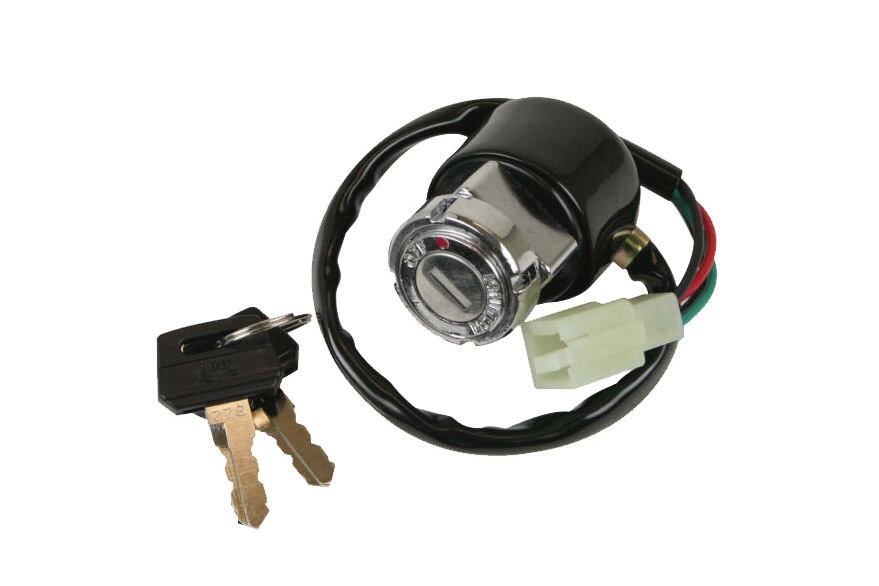 General purpose ignition switch. When on, red and black are conductive. When off, green and black/white are conductive.