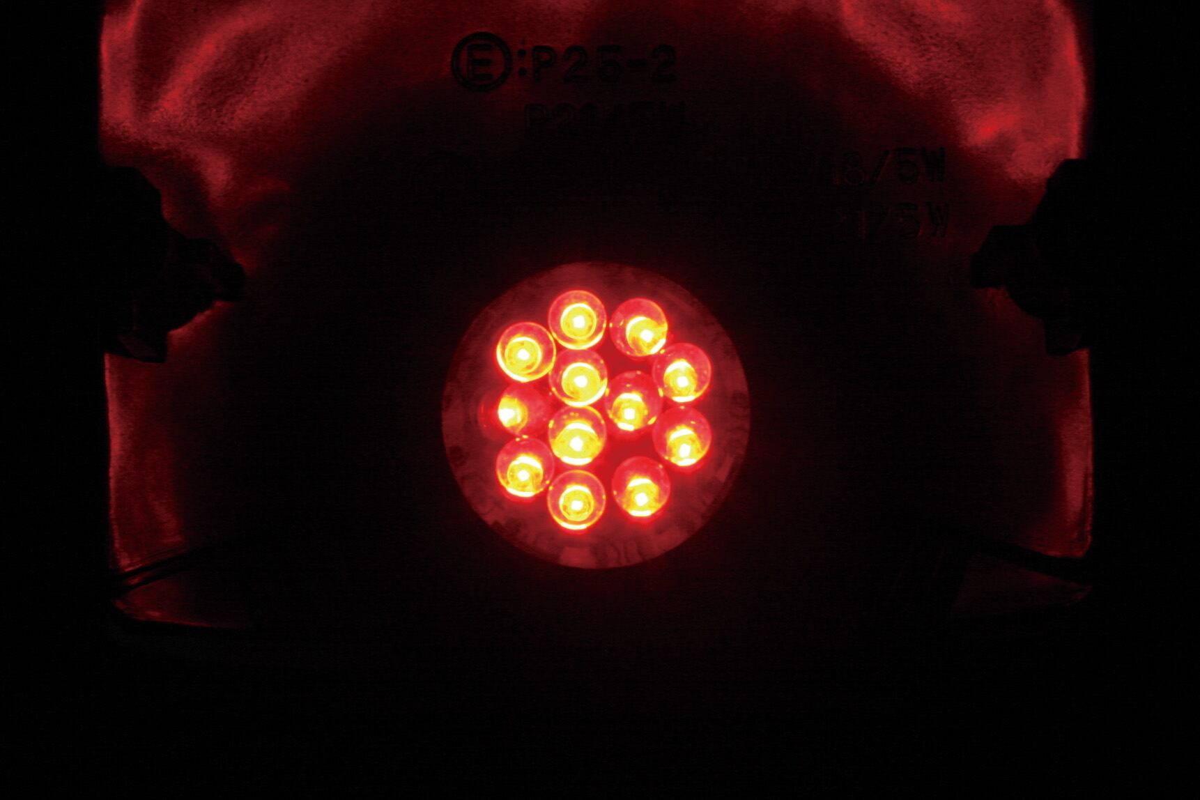 LED tail light bulb with bulb base shape BAY15D that shines red