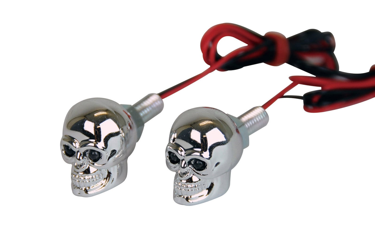 A skull-shaped bolt and nut set with eyes that glow a mysterious red. Recommended for license plate bolts. Wiring color Red: + Black: Earth
