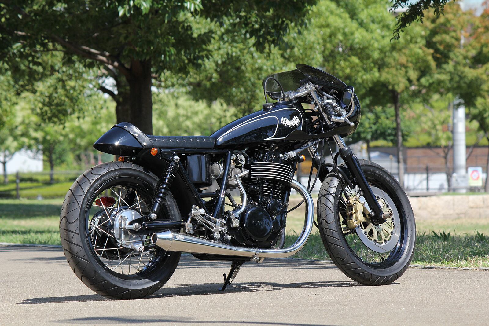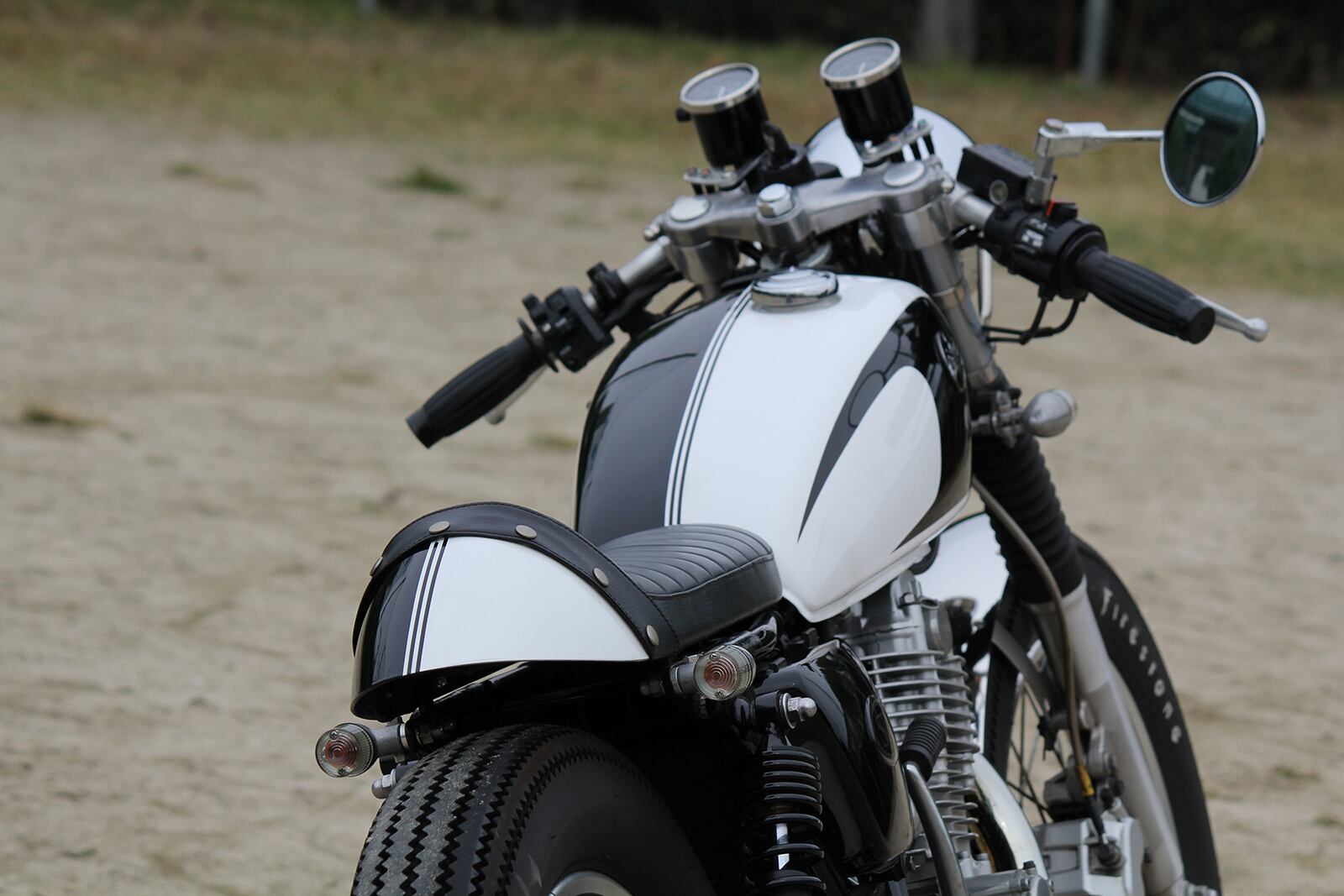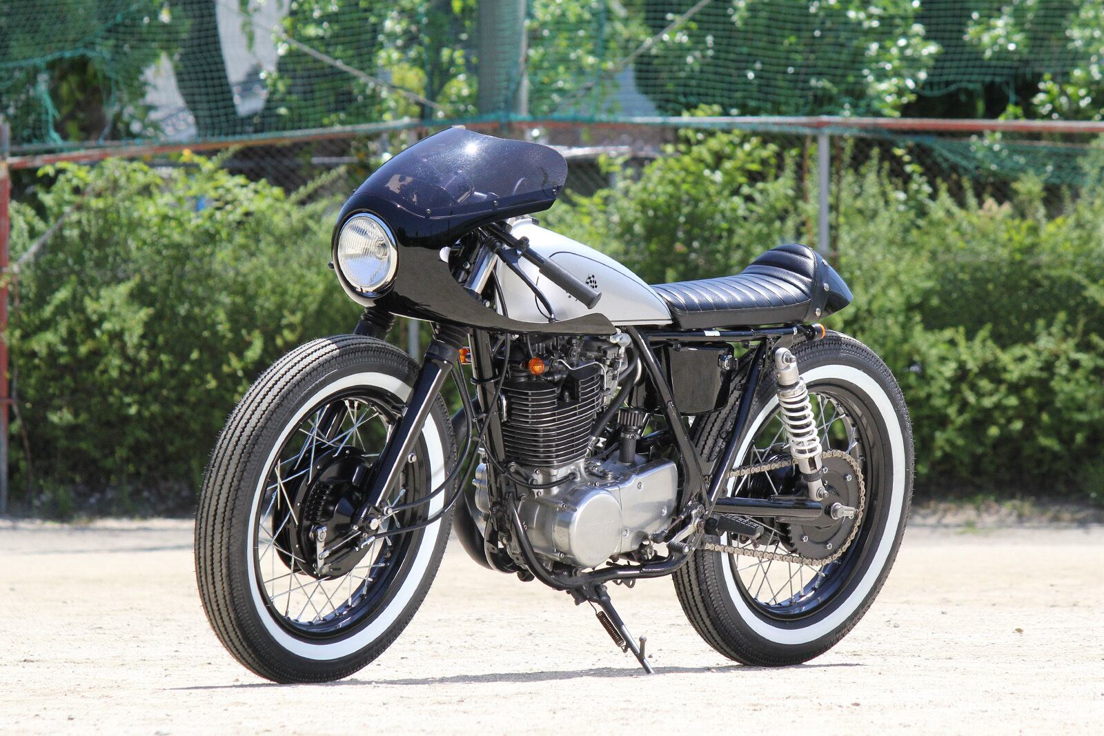 Semi-double seat cowl kit for SR400/500, with skin. Recommended for cafe racers as well as tracker customs. Installation requires cutting and welding on the frame side.