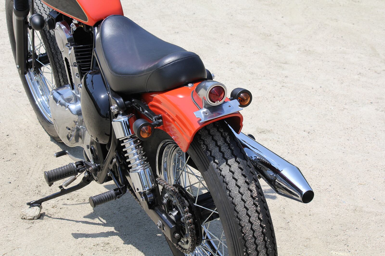 Old scrambler style semi-double seat with fluffy edges. It's thick, so it's comfortable to ride. Although it is designed for short bobber fender (G6-00075), it is also compatible with genuine fender by replacing the rubber. *Mounting holes are required on the short bobber fender side.