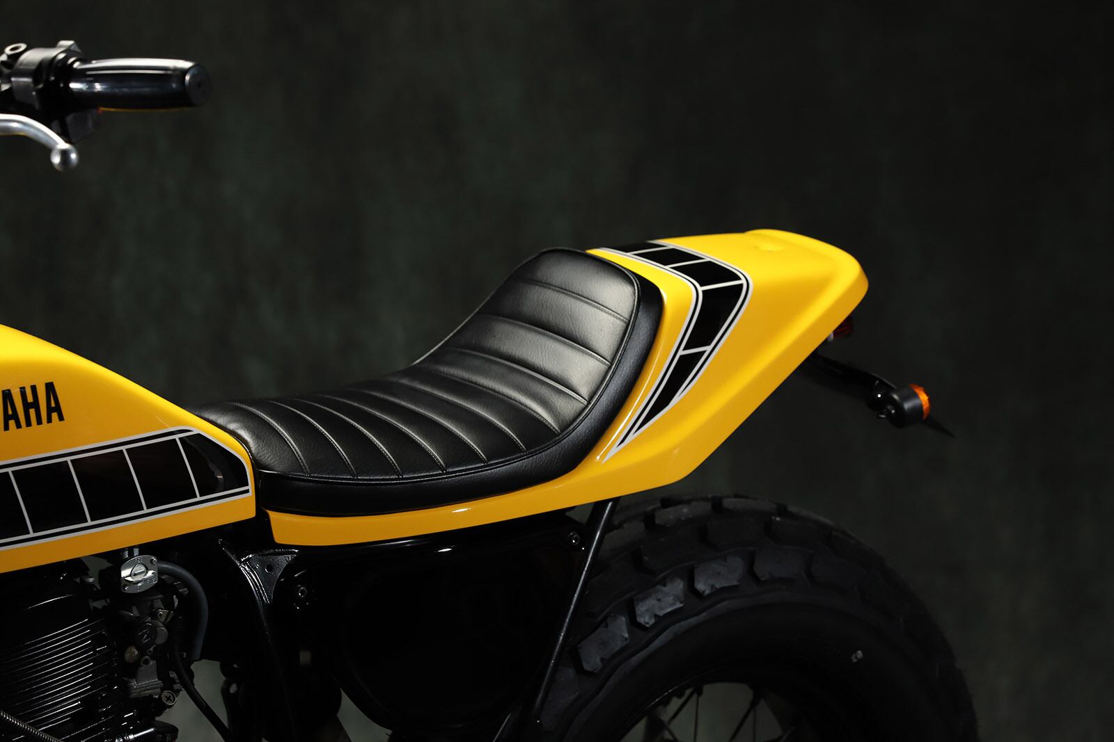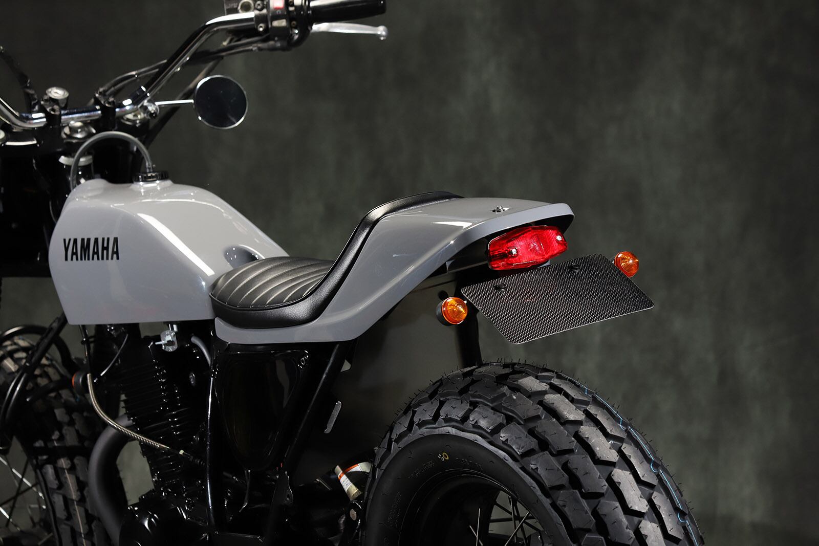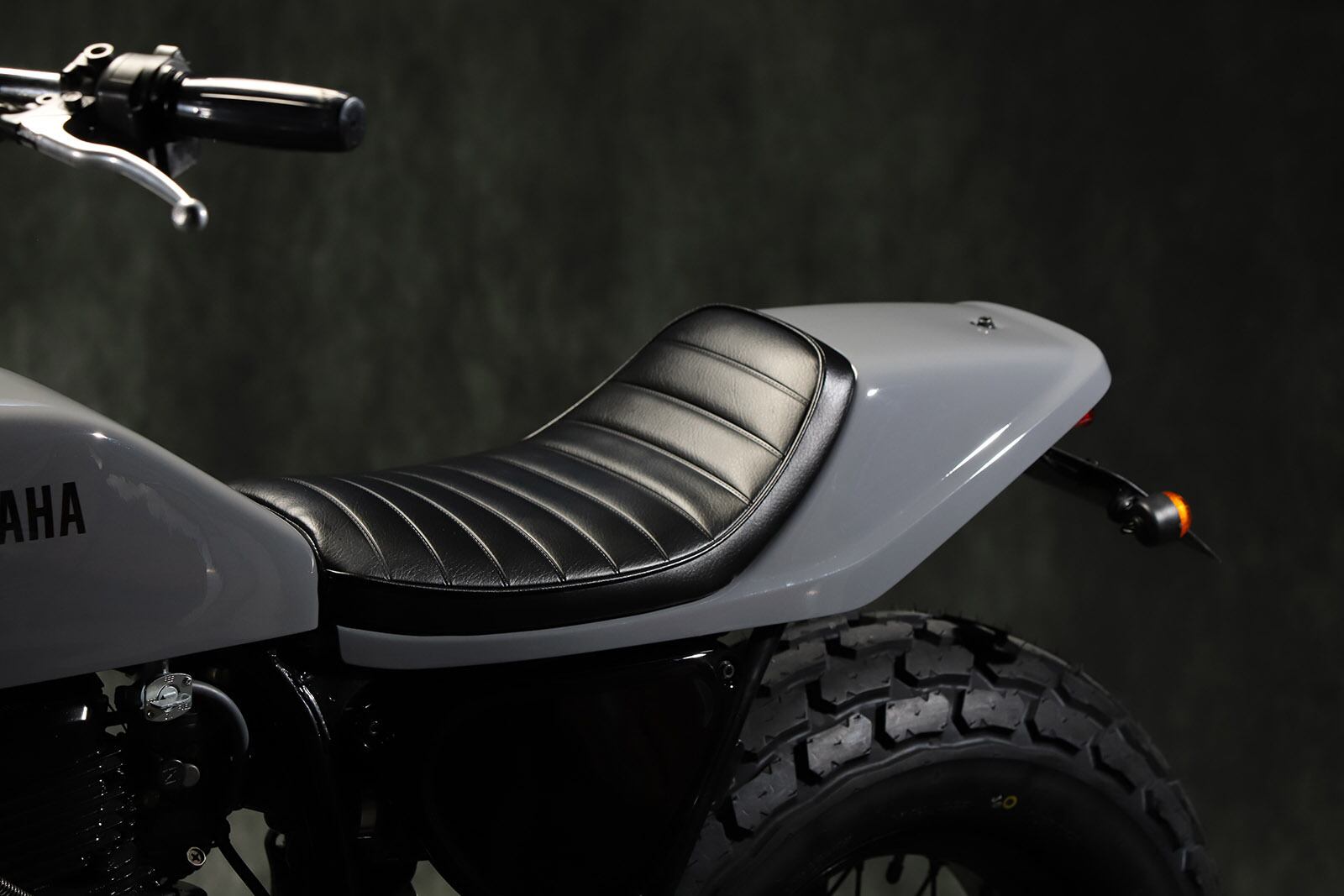 Flat track style FRP seat used in GTW. There are two types of tail: Lucas L525 and LED oval tail. Tandem not allowed. Genuine tank can be used. Wiring processing required.