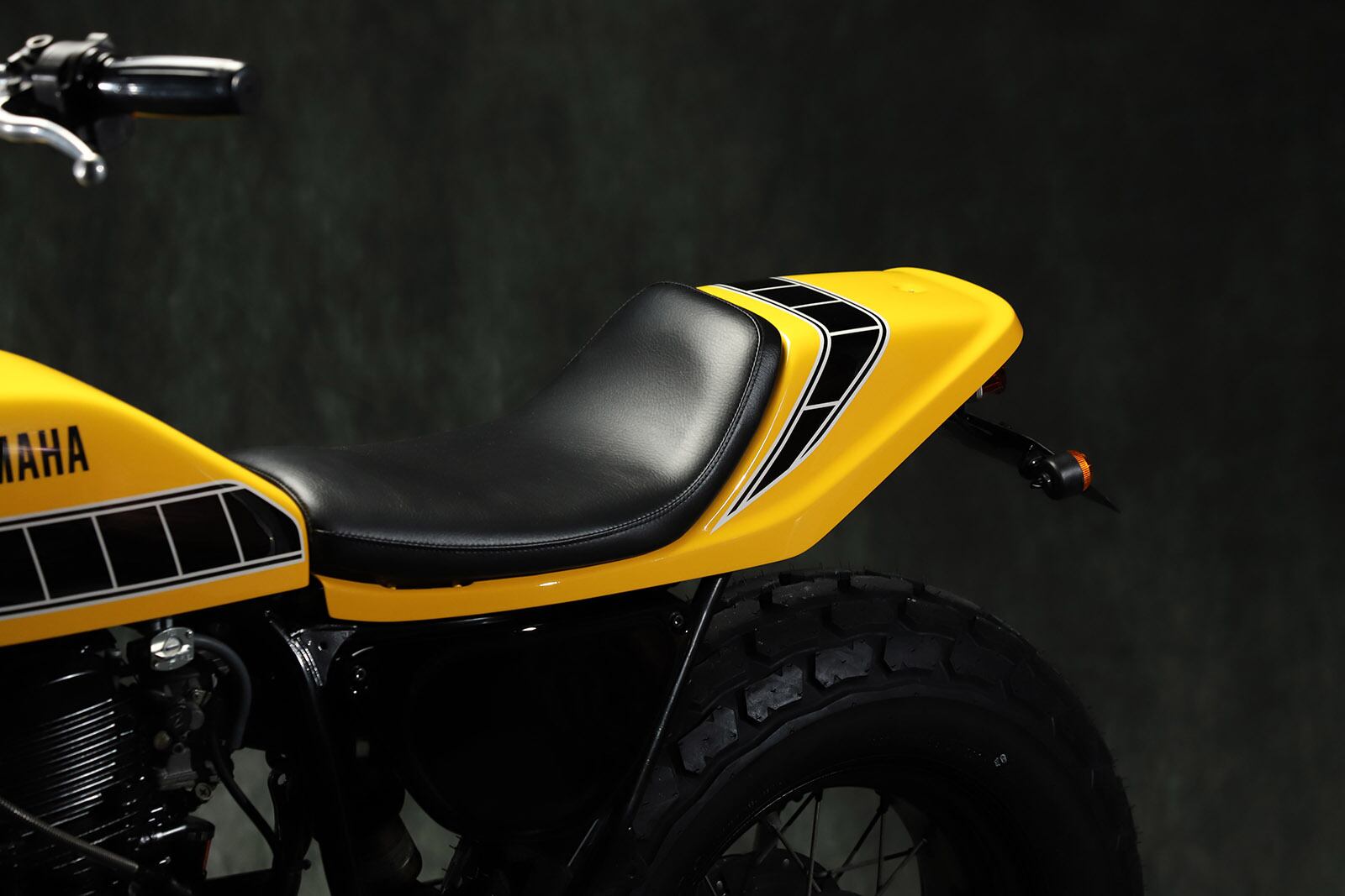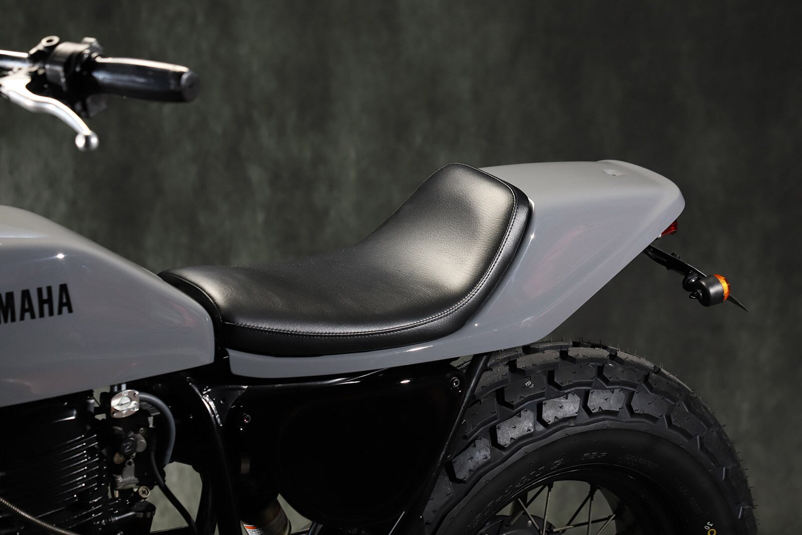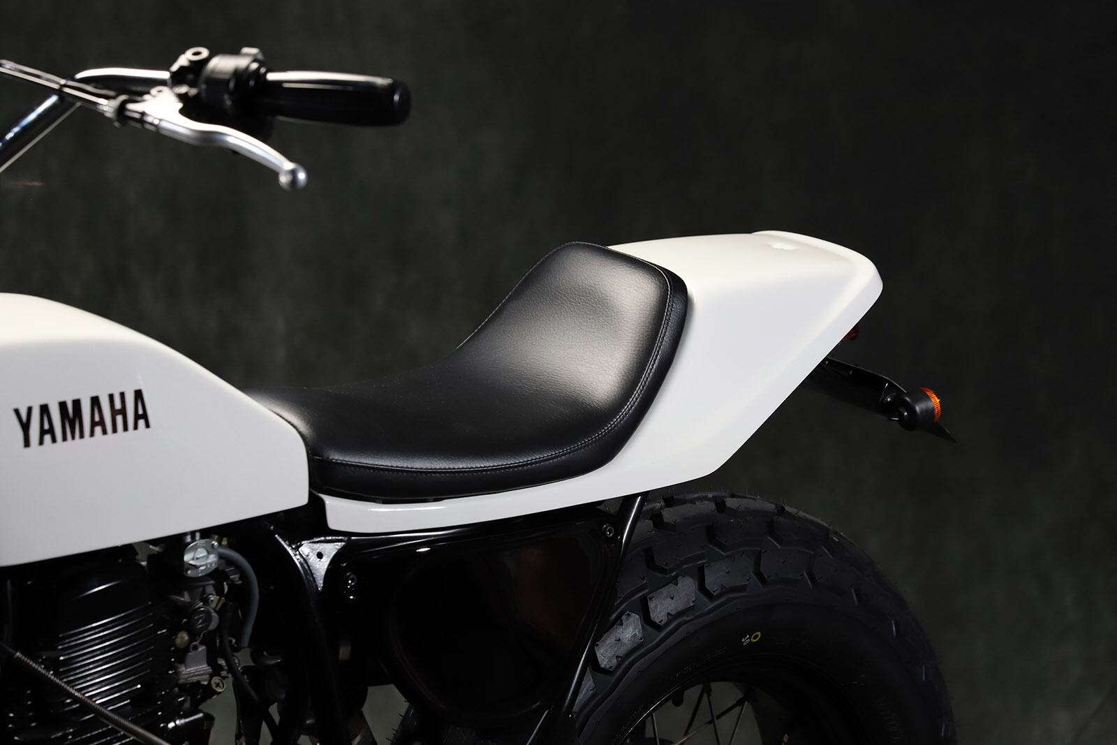 Flat track style FRP seat used in GTW. There are two types of tail: Lucas L525 and LED oval tail. Tandem not allowed. Genuine tank can be used. Wiring processing required.
