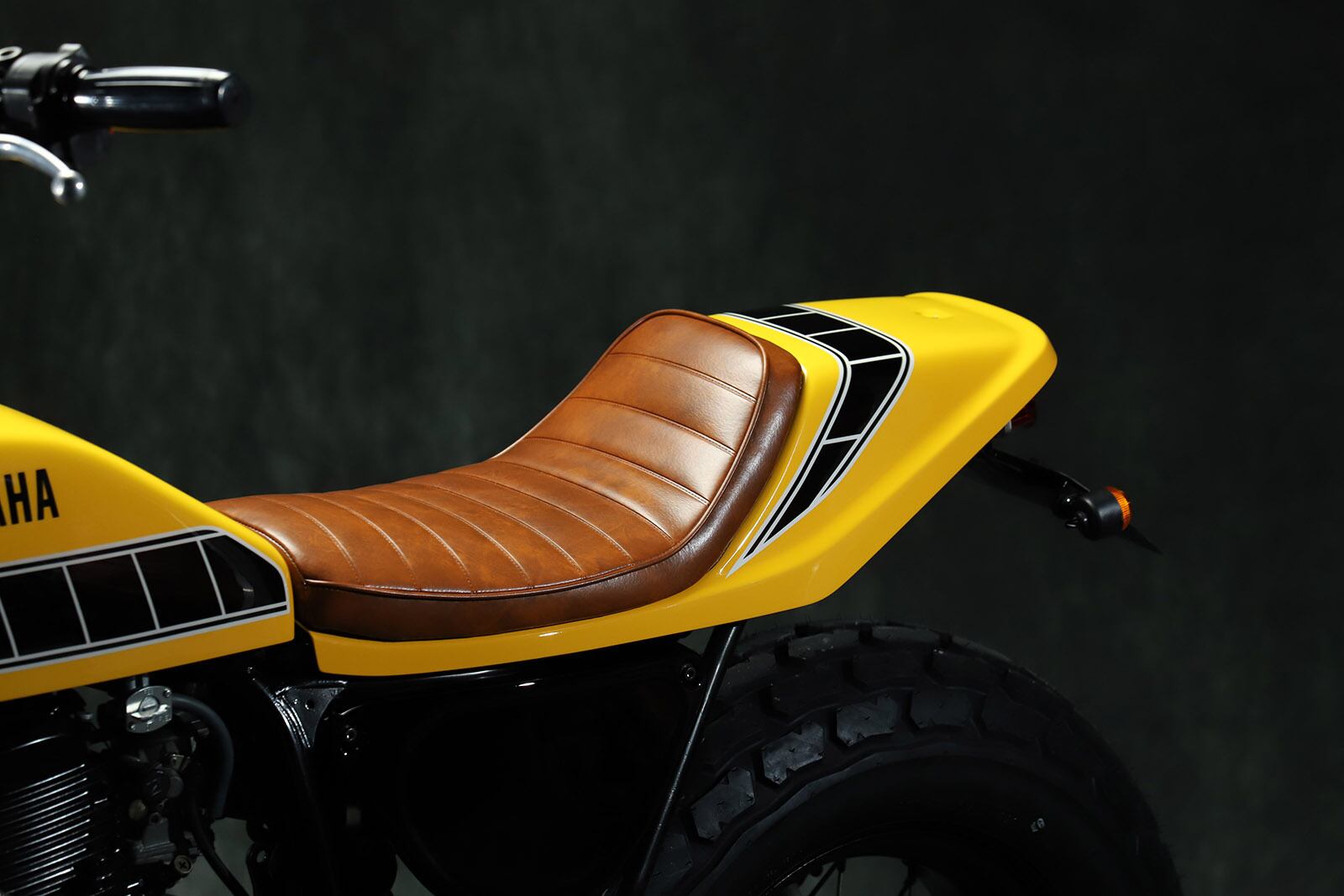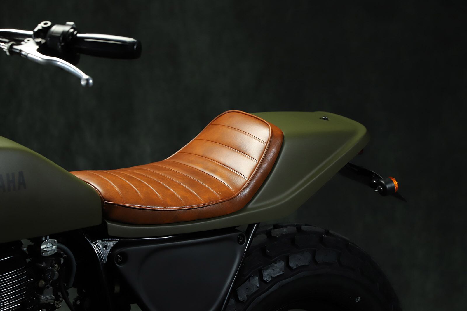 Flat track style FRP seat used in GTW. There are two types of tail: Lucas L525 and LED oval tail. Tandem not allowed. Genuine tank can be used. Wiring processing required.