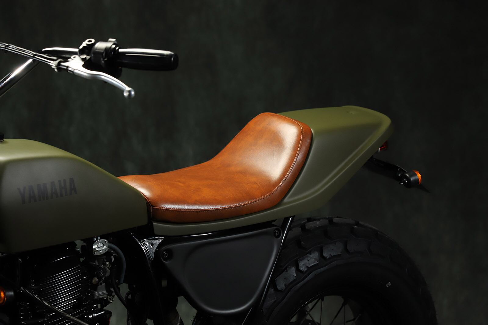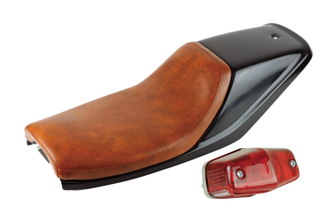 Flat track style FRP seat used in GTW. There are two types of tail: Lucas L525 and LED oval tail. Tandem not allowed. Genuine tank can be used. Wiring processing required.