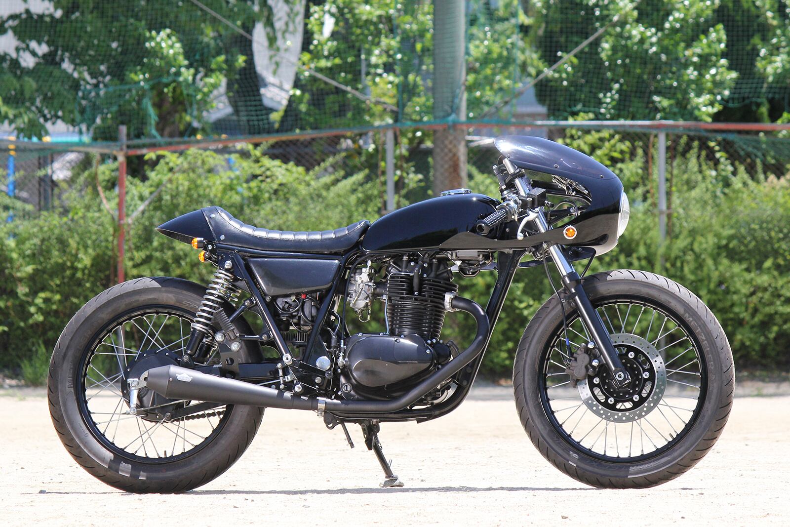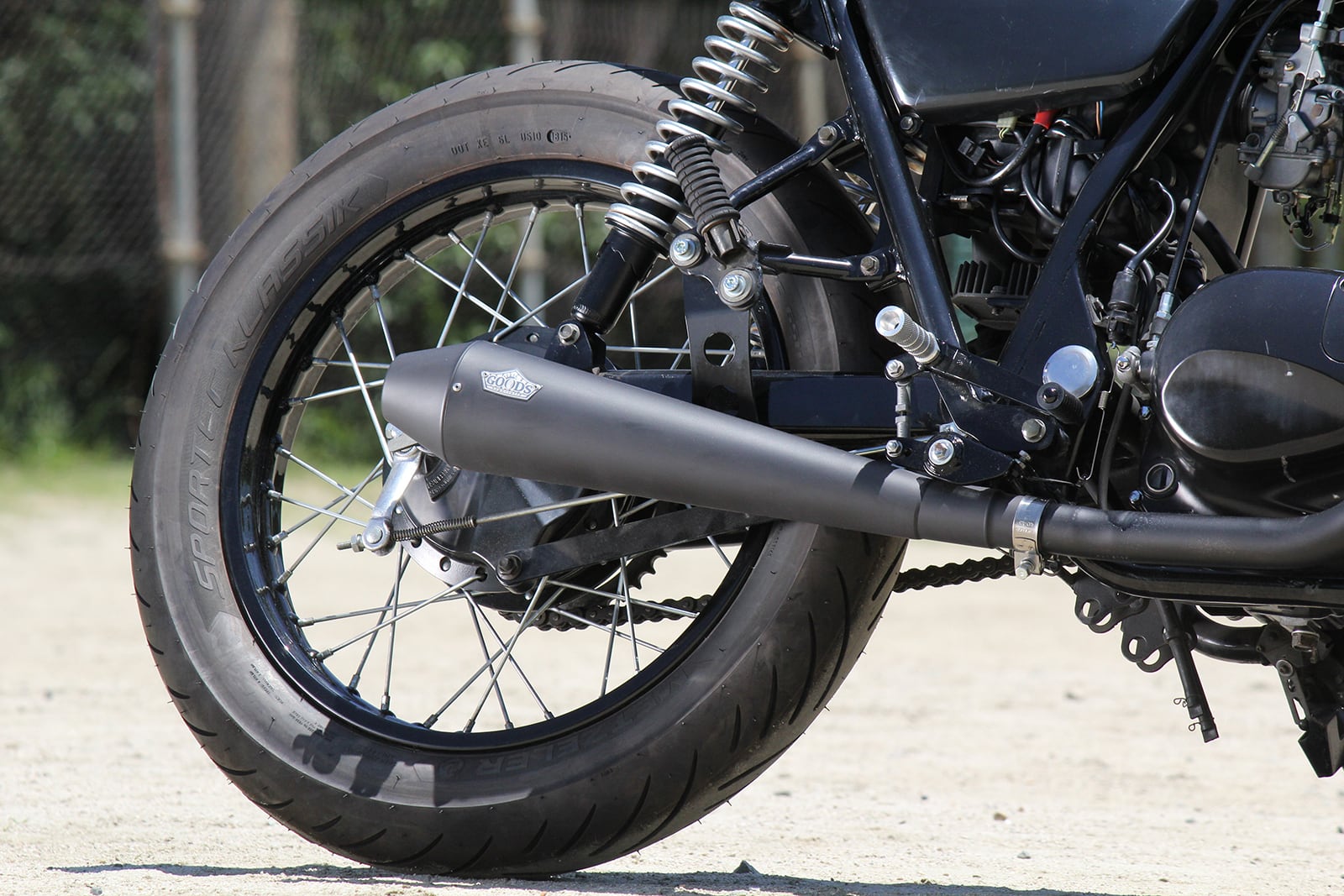 All-stainless steel slip-on muffler specially designed for the 250TR. Black heat-resistant baked paint finish. The exterior has a tapered cone shape with metal spinning and the megaphone exudes charm, making it suitable for a wide range of uses, from street customs to chopper customs. The volume is 83.2db when idling and 98.6db at 4000rpm on an FI car. The internal structure is a straight structure + molded wool with an inner baffle made through trial and error, which increases power throughout the entire range, mainly at medium and low speeds that are commonly used for city riding, but also at high rotations (see graph).