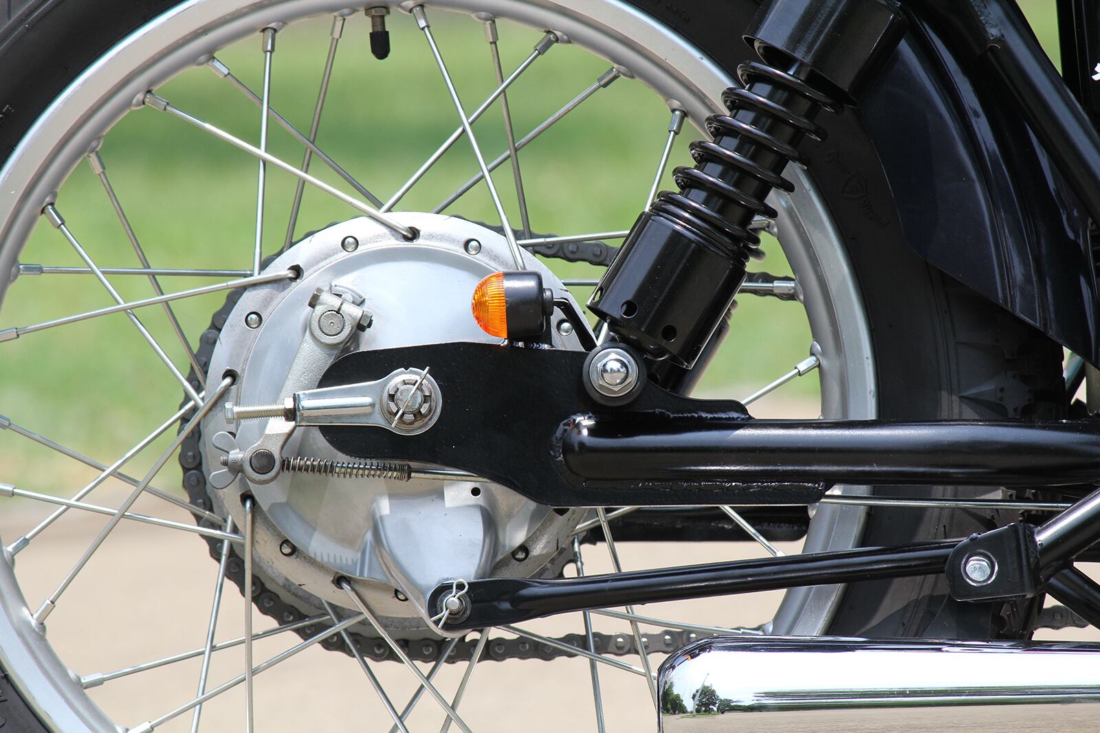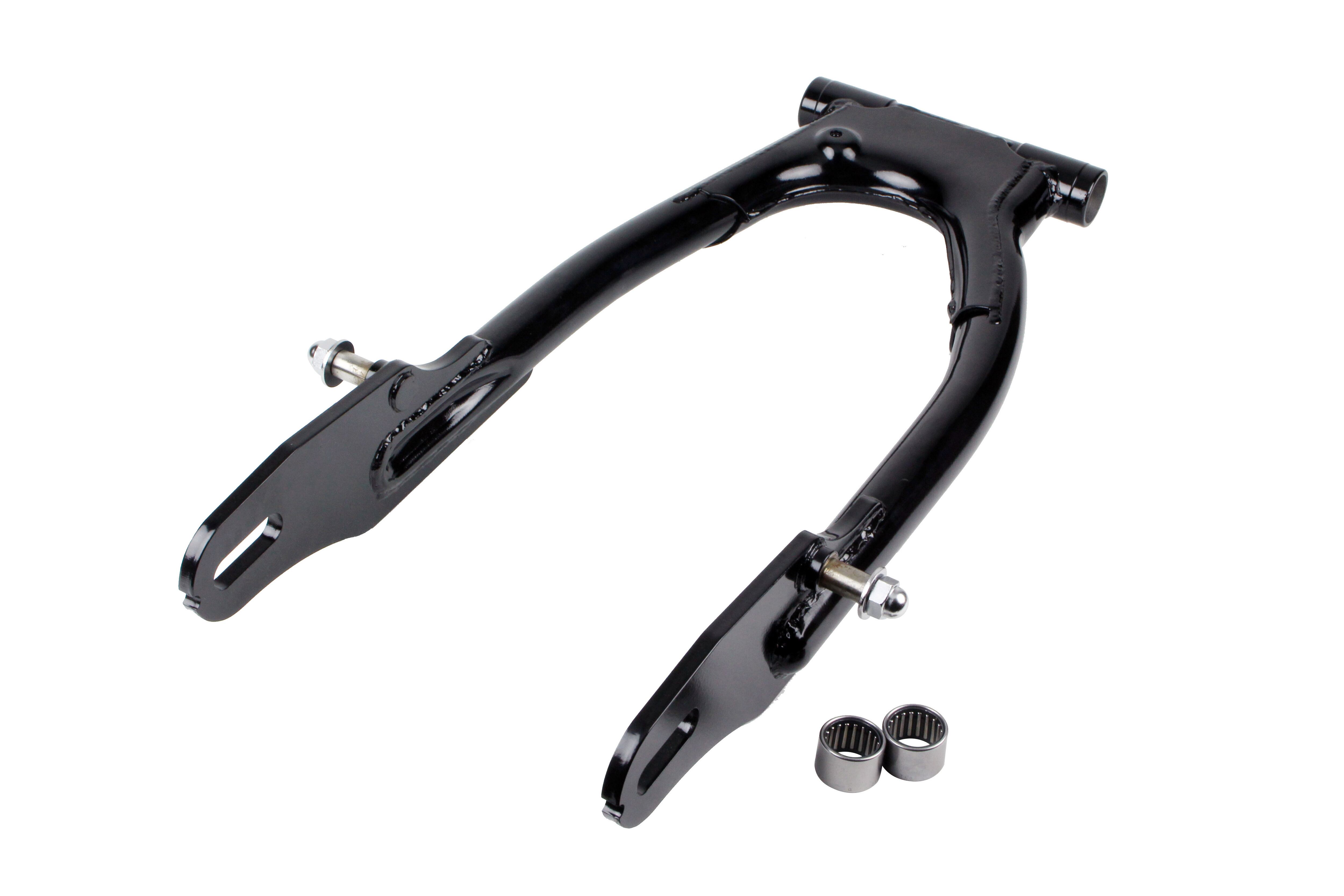 Genuine machined swing arm with 35mm down and 50mm long low down. The bearings replaced with new ones, and the paint is baked acrylic. The chain is 428 and needs to be changed to 138L (87-38398OR).※Processing and installation is required to prevent fenders etc. from interfering. ※It is necessary to install a separately sold torque rod and brake arm extension plate, or to extend the genuine product. ※Chain guard not available. If you would like an unpainted early model swing arm, we will process the swing arm you send us as a made-to-order product. The price will be \34,650. Please remove the torque rod, leave the bearings attached, clean the swing arm, and ship it by courier. It will be shipped approximately one week after arrival. (excluding summer and New Year holidays, confirmation required) ※Bearings are not driven in and are included as accessories.