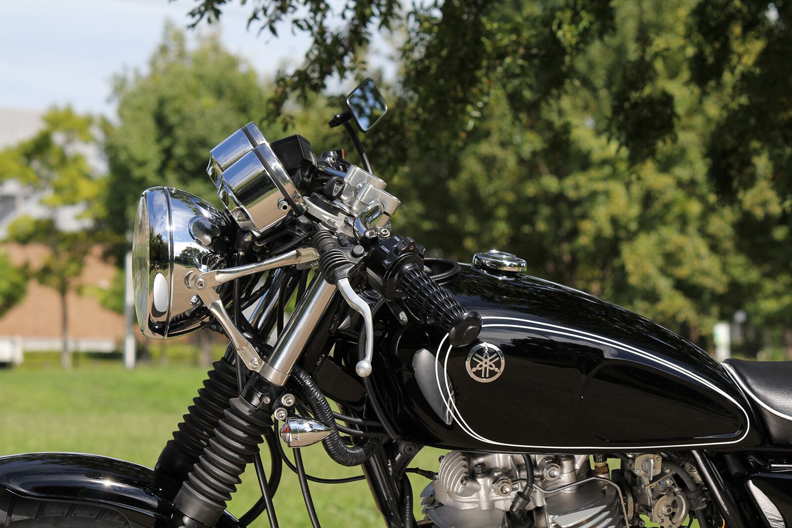 Headlight stay that clamps to the front fork. For Φ35mm fork. Adjustable up and down for fine adjustment.