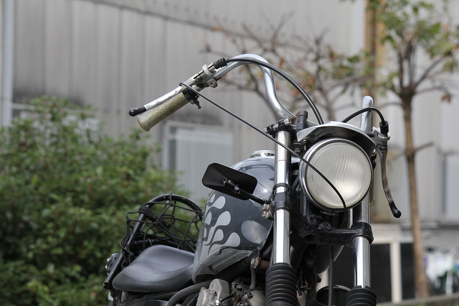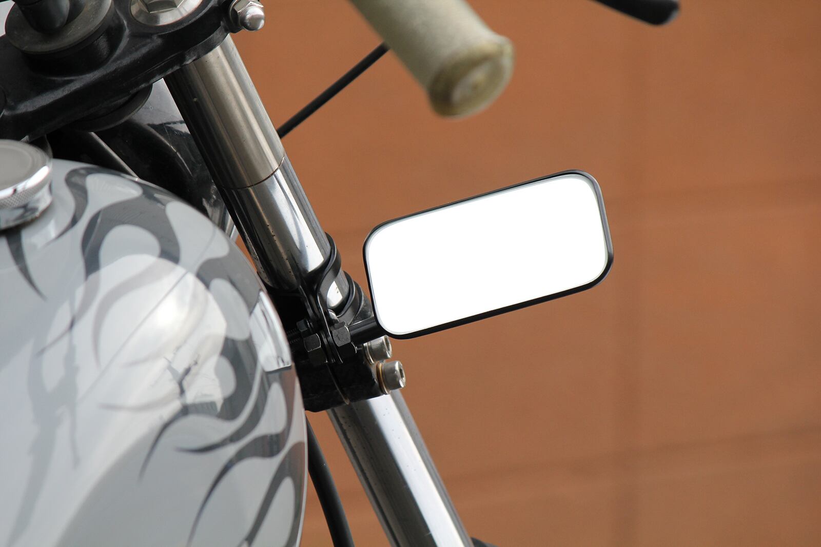 A side mirror kit that makes the area around the steering wheel more tidy. Used by clamping on a fork with a diameter of Φ35mm to Φ41mm.