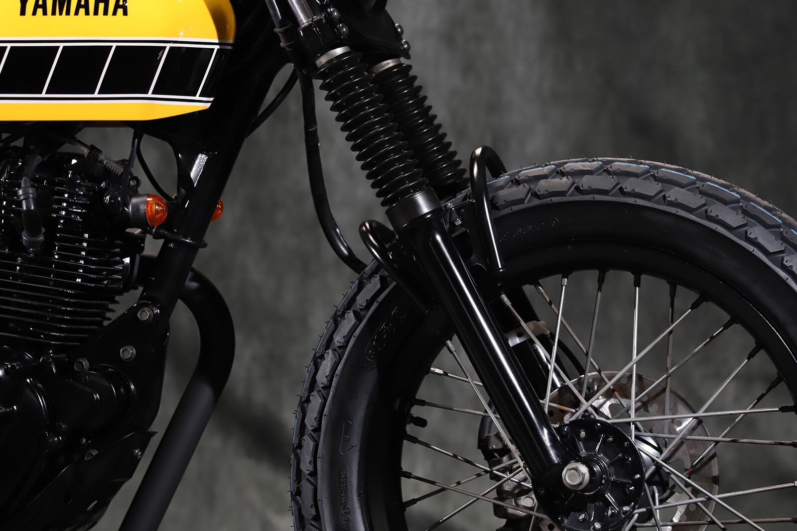 Stabilizer for TW200/225. Increases the rigidity around the front when the fender is removed. If you attach a special fender, it will be upgraded to a pipe work front fender. The front wheel can be installed without removing it.