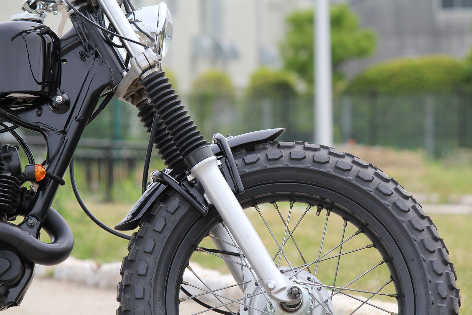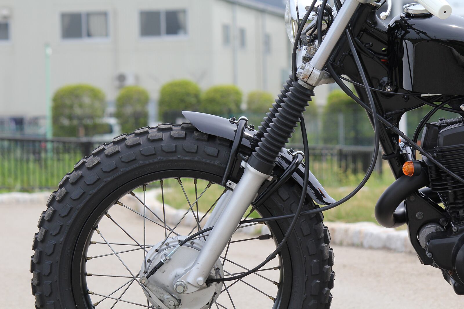 TW200/225 stabilizer and fender kit. Increased rigidity around the front, allowing installation of high-height tires such as Firestone. The front wheel can be installed without removing it.