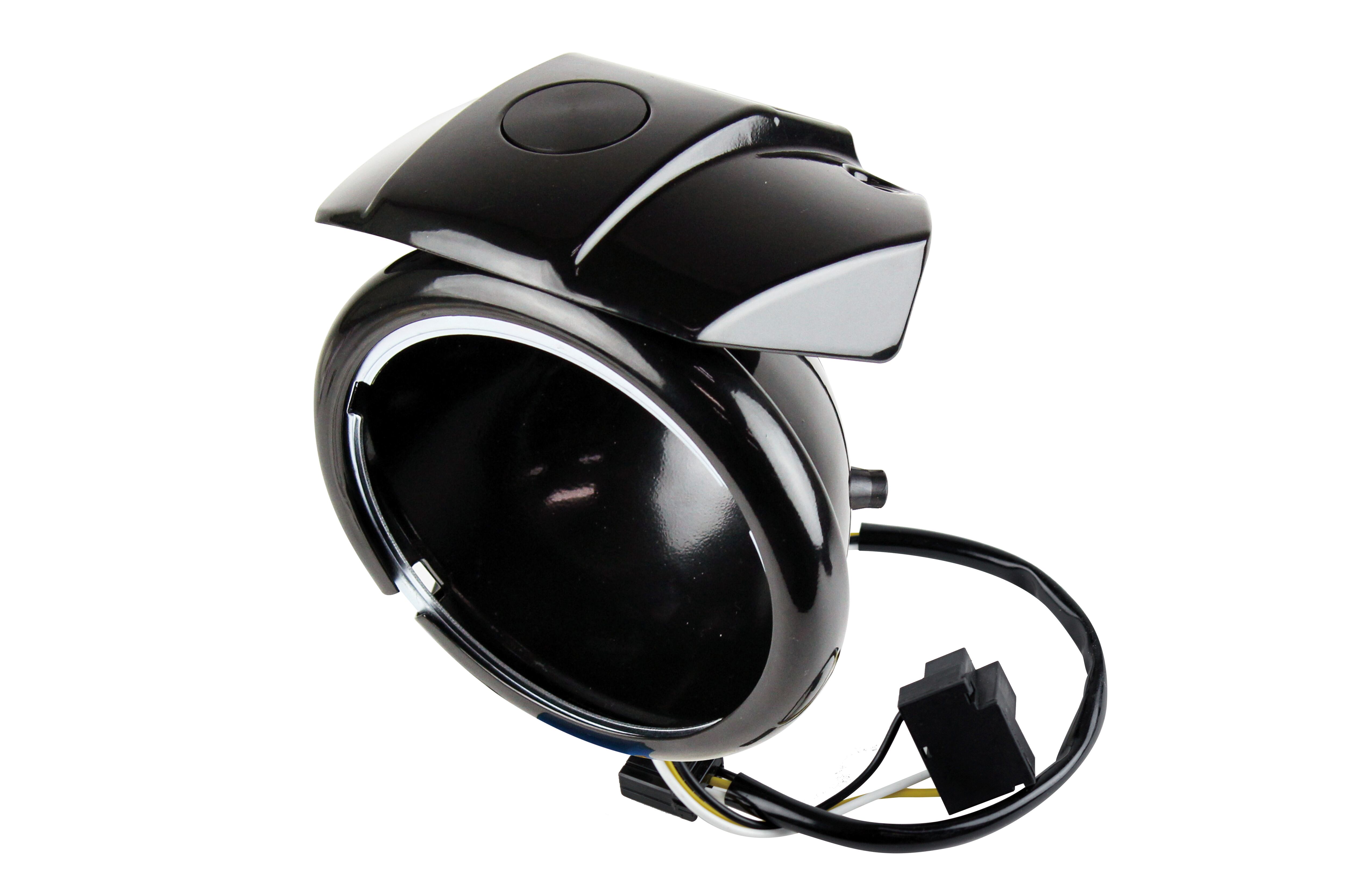 Hanger style headlight case, gloss black color, compatible with HD genuine 5-3/4 inch light unit (XL04'~, etc.) and G6-00159 projector LED headlight unit. Can be customized in a variety of ways other than HD narrow glide cars.