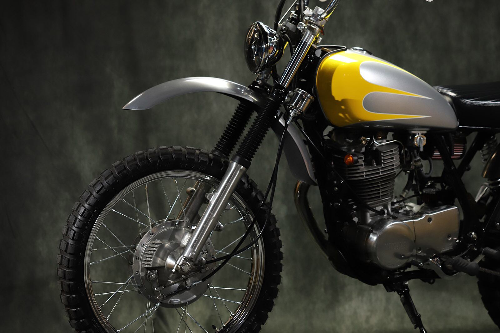 FRP black gel coat finish up fender kit for SR400/500 recommended for VMX style. Compatible with 21 inches and anti-vibration rubber mount. Installation is at the bottom of the understem, and in the case of Bates light stays, it is installed by tightening together. *Genuine light stay not available.