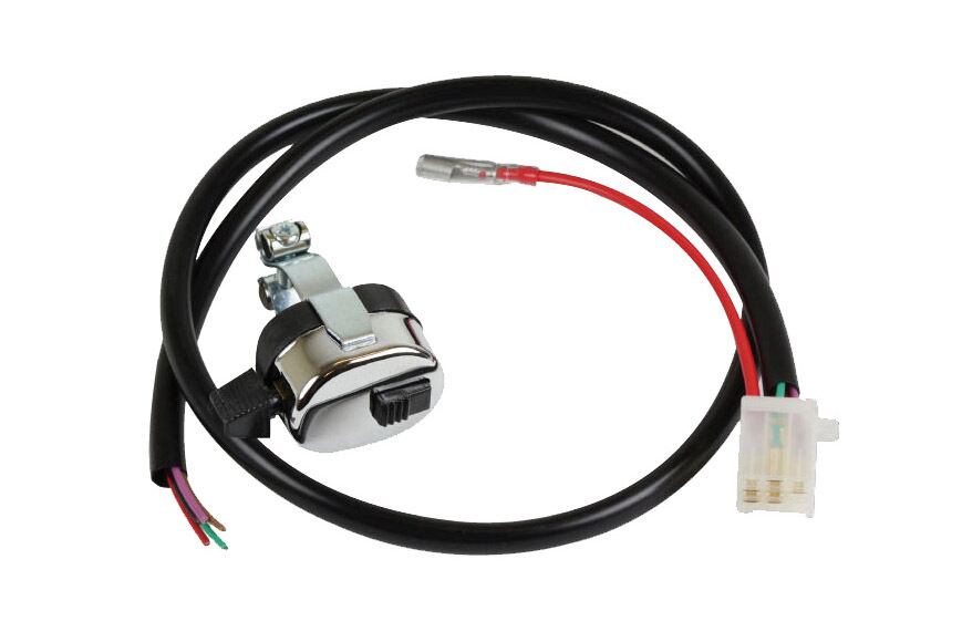 A switch and harness set for attaching the mini turn signal switch (46-68900) to SR400/500 (85-00) with coupler on. The switch side of the wiring can be cut to any desired length.
