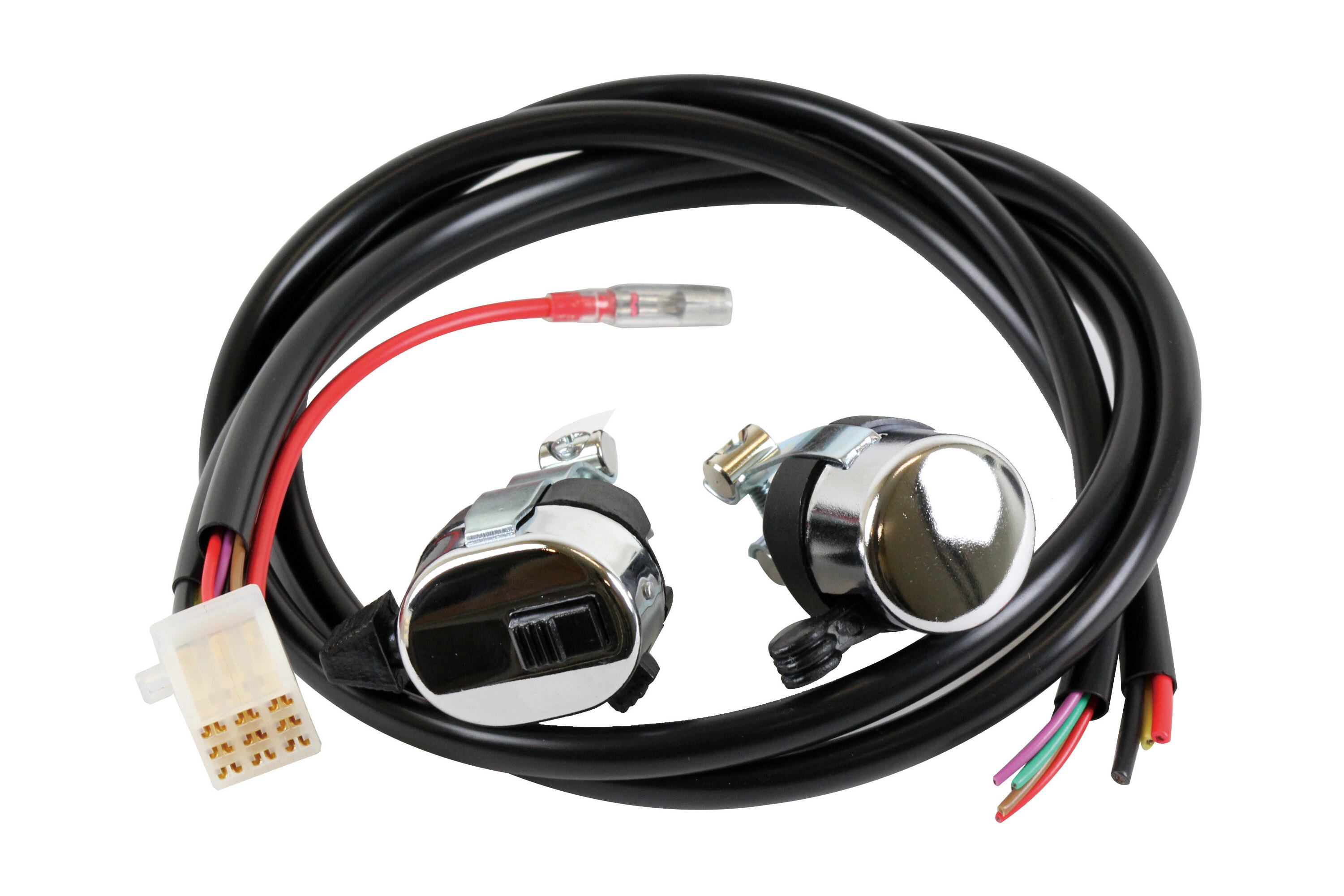 A switch and harness set for attaching the mini turn signal switch (46-68900) and dip switch (46-68700) to the TW200/225 with a coupler on. The switch side of the wiring can be cut to any desired length.