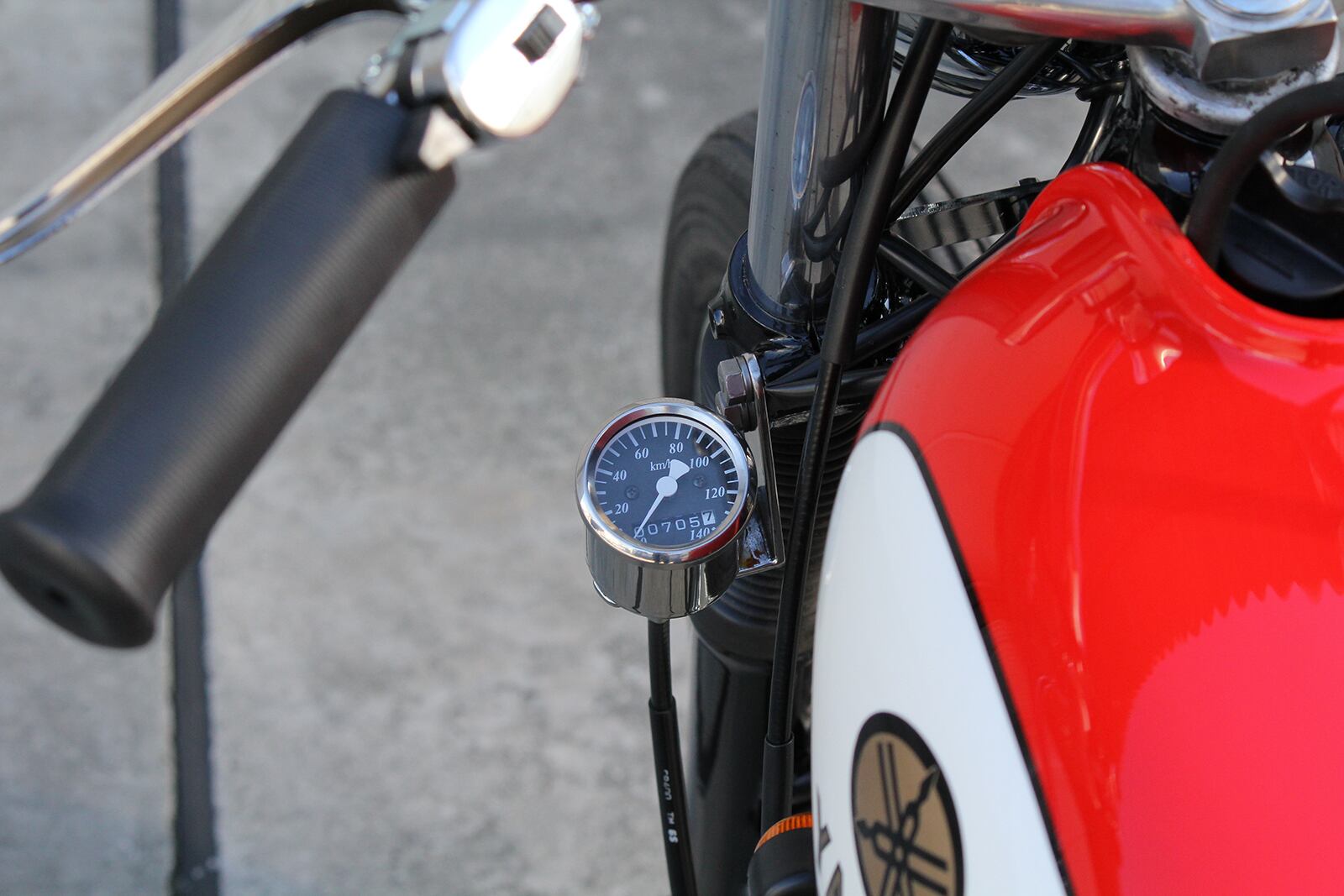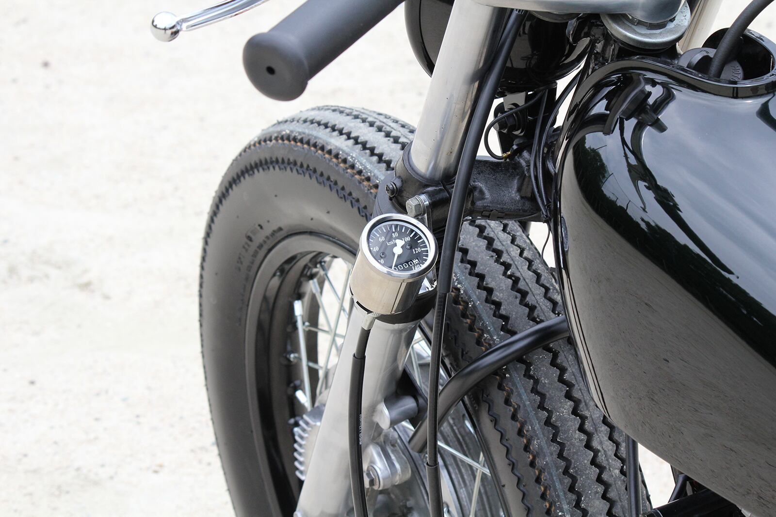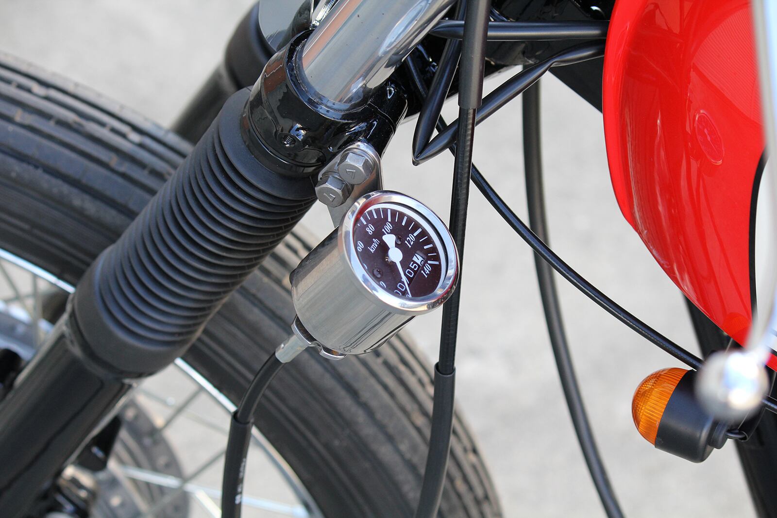 A meter kit that is tightened together with the understem. A neat meter mount with a dedicated meter cable.※The initial model (78-84) has different wiring on the main harness side, so wiring processing is required for installation.