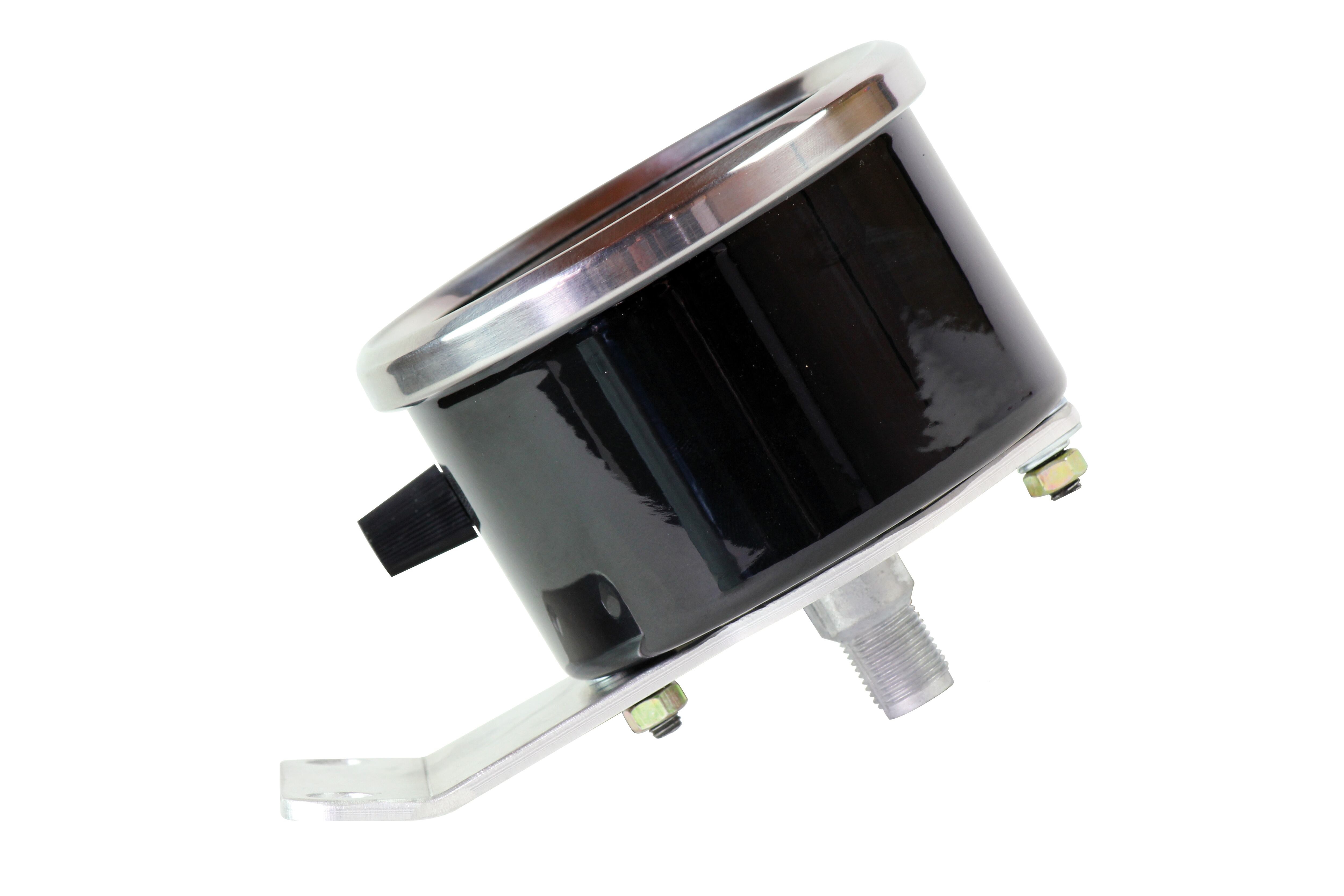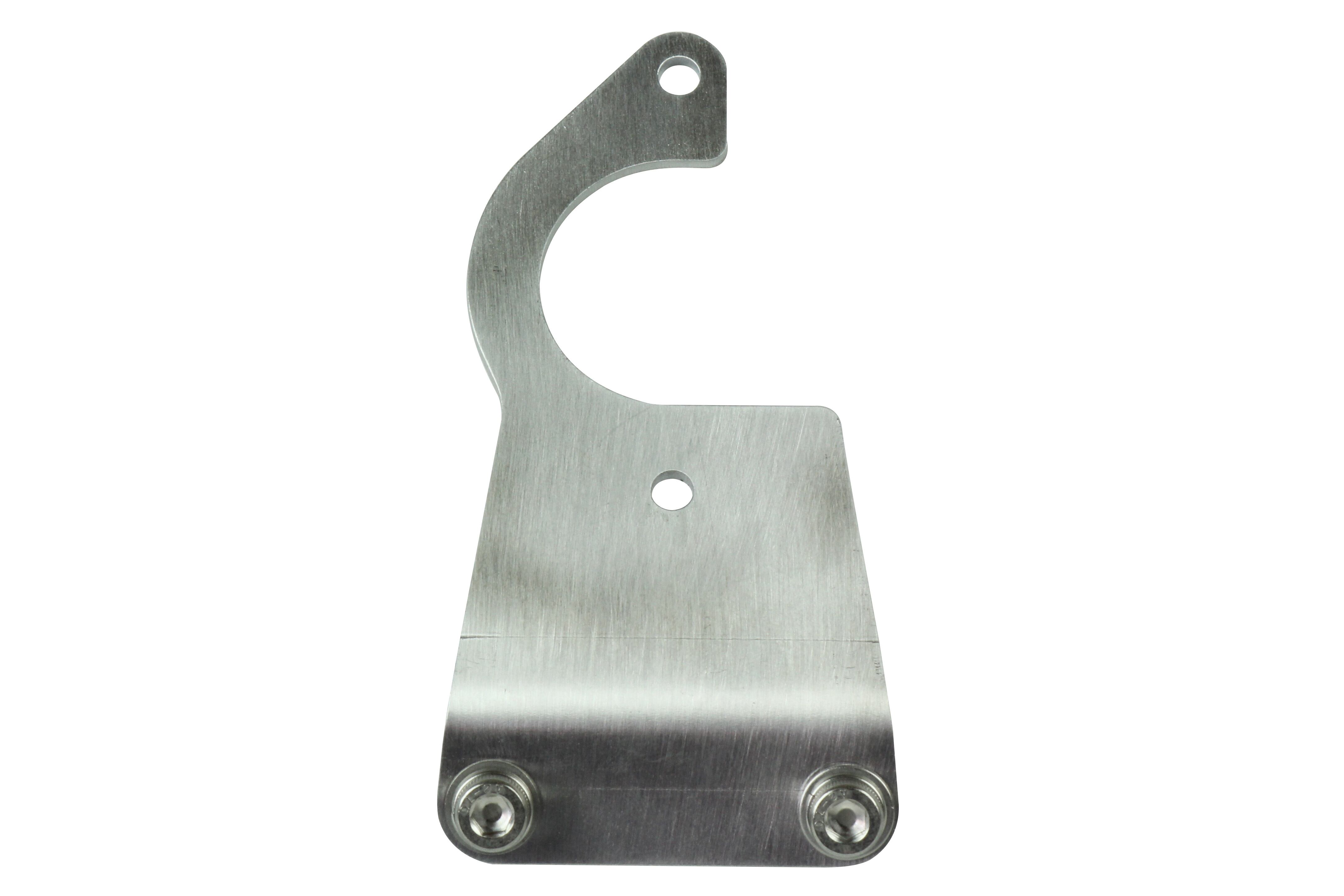 A stay to attach the SMITH style speedometer (58-43642) to the SR top bridge center. Lacy aluminum hairline finish. Relocation of main key required. For '94 and later models, part of the top bridge must be cut and the main key relocated.