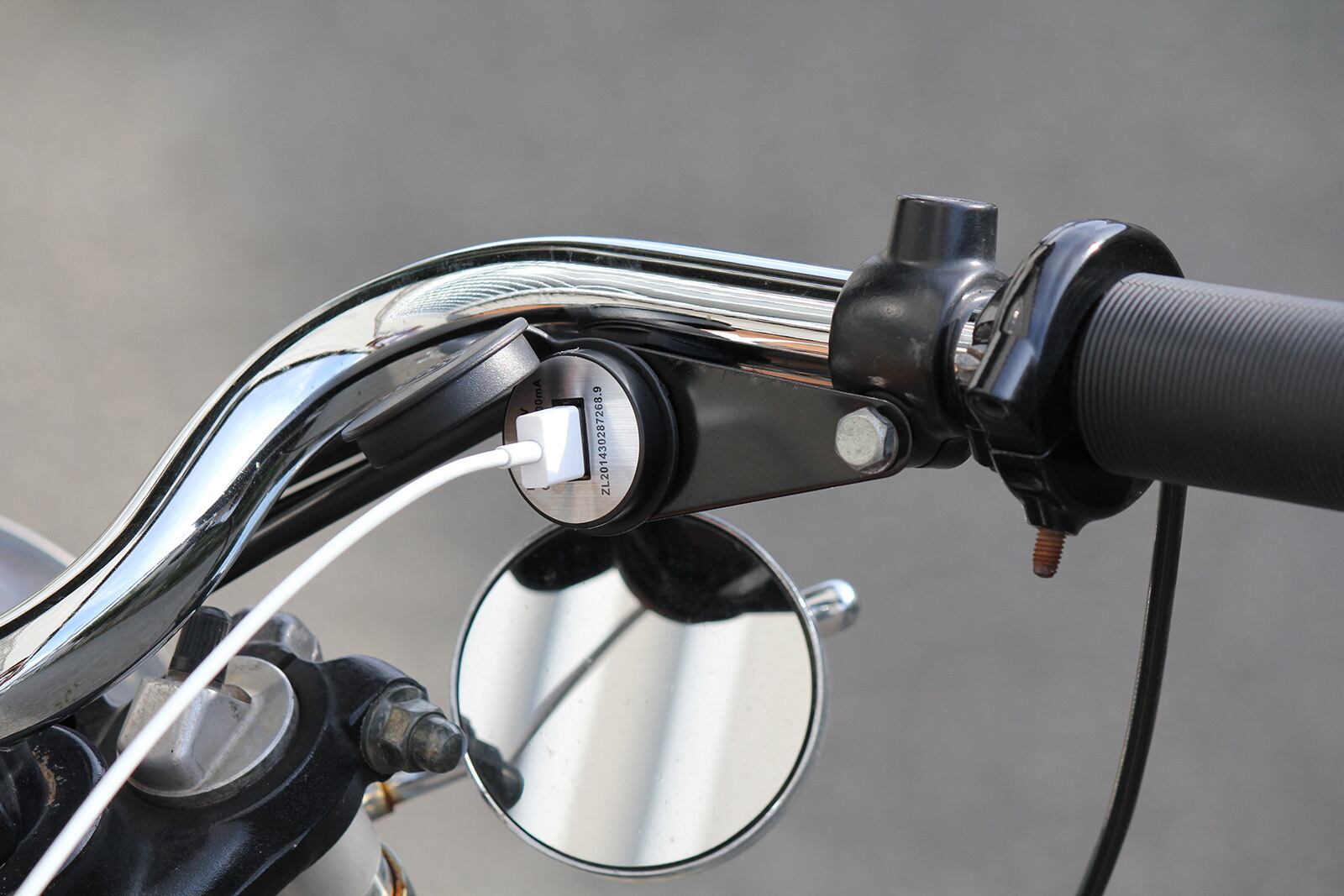 USB port attached to the vehicle body. Used by connecting the battery or each positive power supply to the negative terminal. A convenient item for commuting and touring, such as charging your smartphone while driving. Output is 5V, 1000mA.