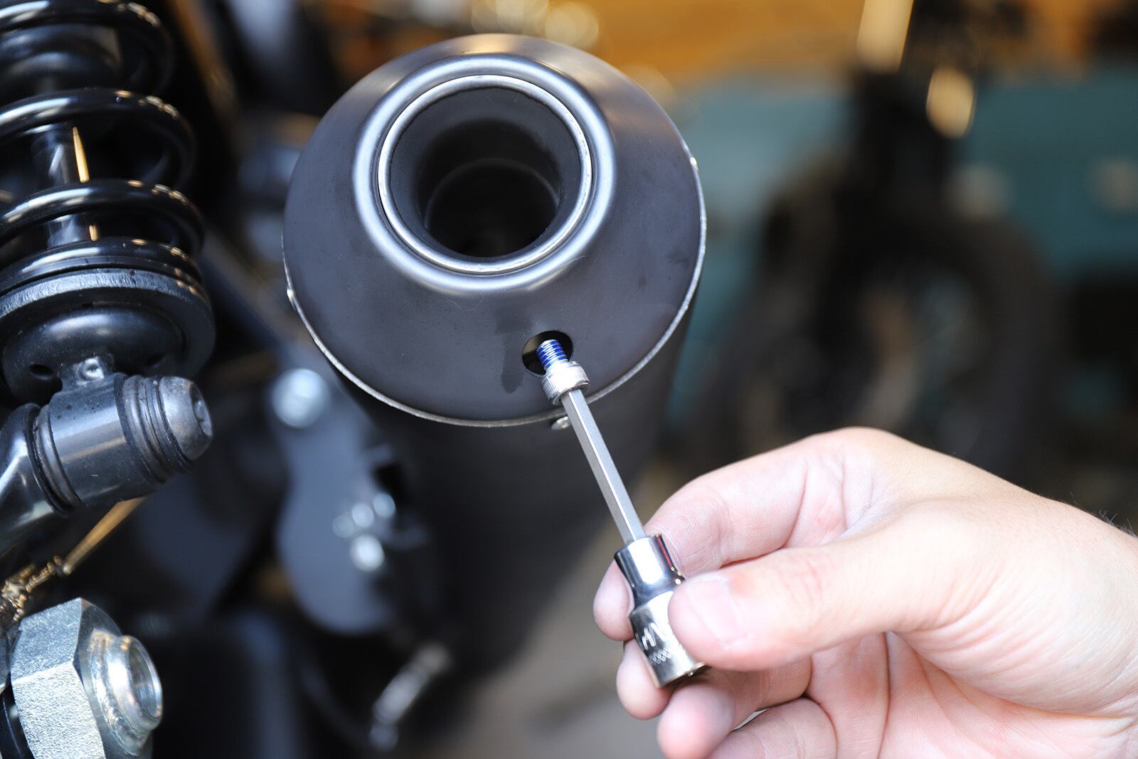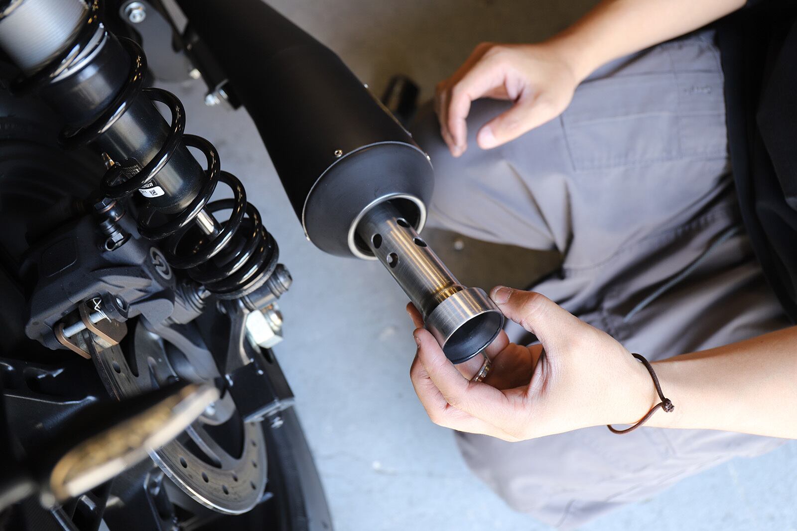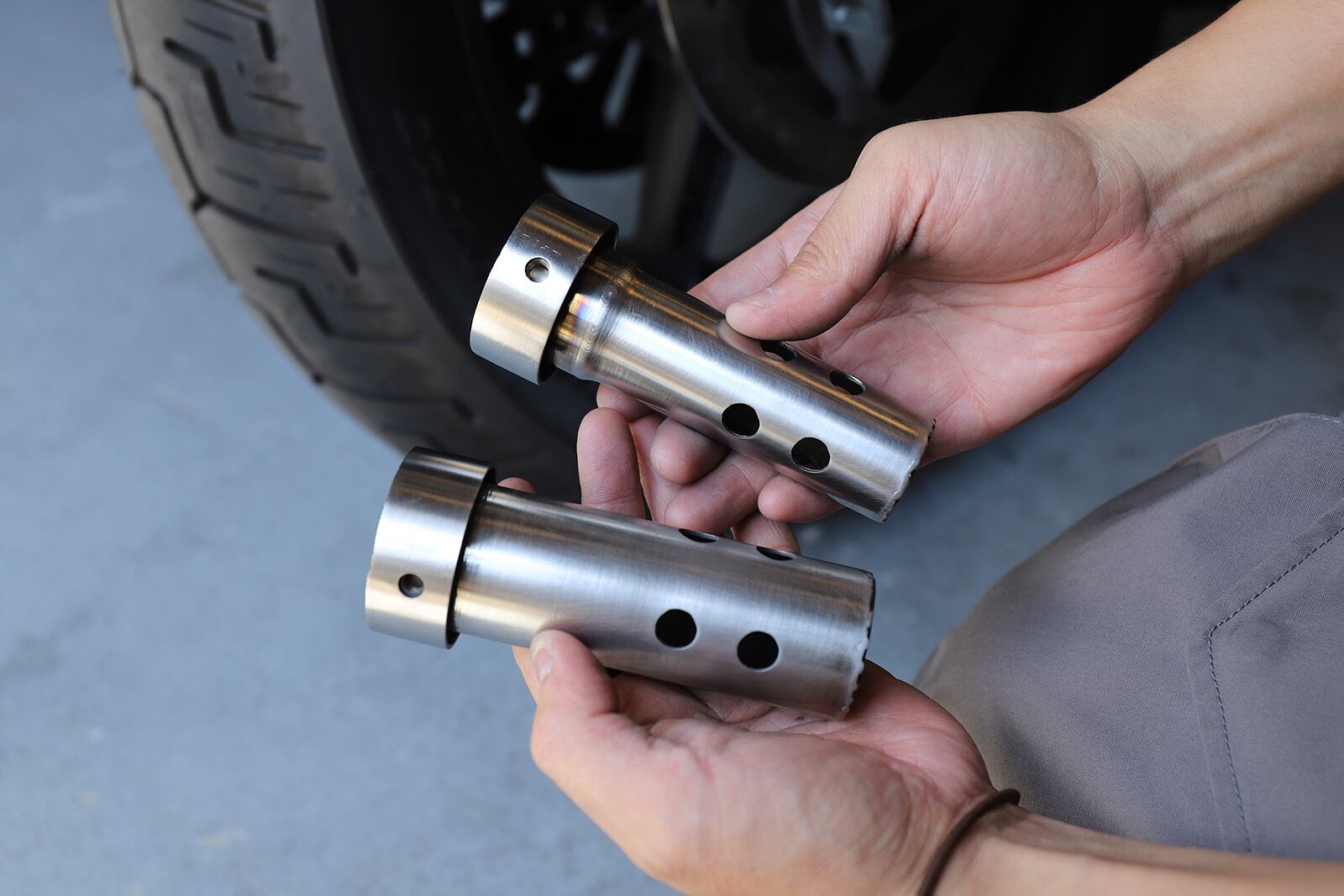 Dedicated baffle for Clubman Silencer for RH975/Nightstar. Output can be further improved by replacing the standard baffle. Work can be done with the muffler attached to the vehicle body. It can be removed with a single bolt from the hole at the bottom of the silencer end. Please use thread locking agent on the bolts. The volume will be higher than standard baffles. After driving, be sure to retighten each part.
