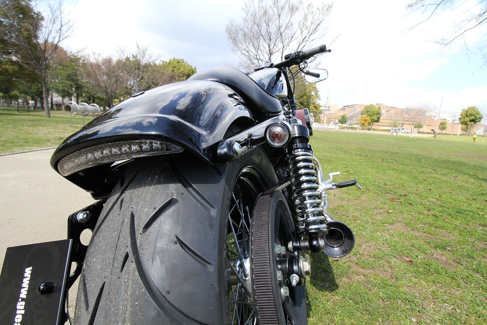 Short rear fender for Sportster (04'-06', 10'-19'). Hollow out the sides for a more stylish look. The end has a molding design that connects from the side, and an optional LED tail (61-89591) can be attached to the back. *Side license plate required