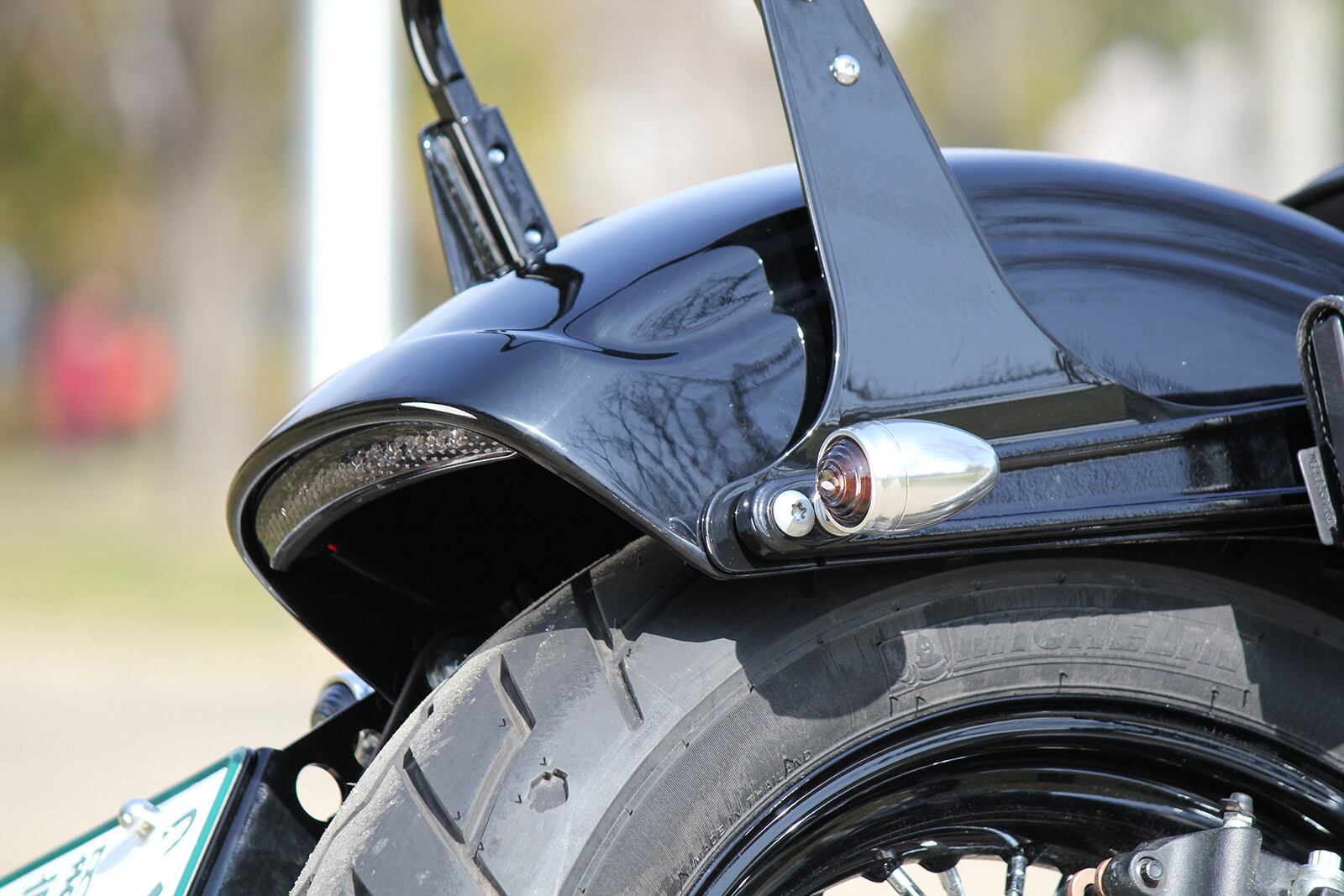 Short rear fender for Dyna (06'-15'). With an end line that stands up more than the FXDB, the fender side has a slim design that can be seen from the side. The end has a molding design that connects from the side, and an optional LED tail (61-89591) can be attached to the back. *Side license plate required