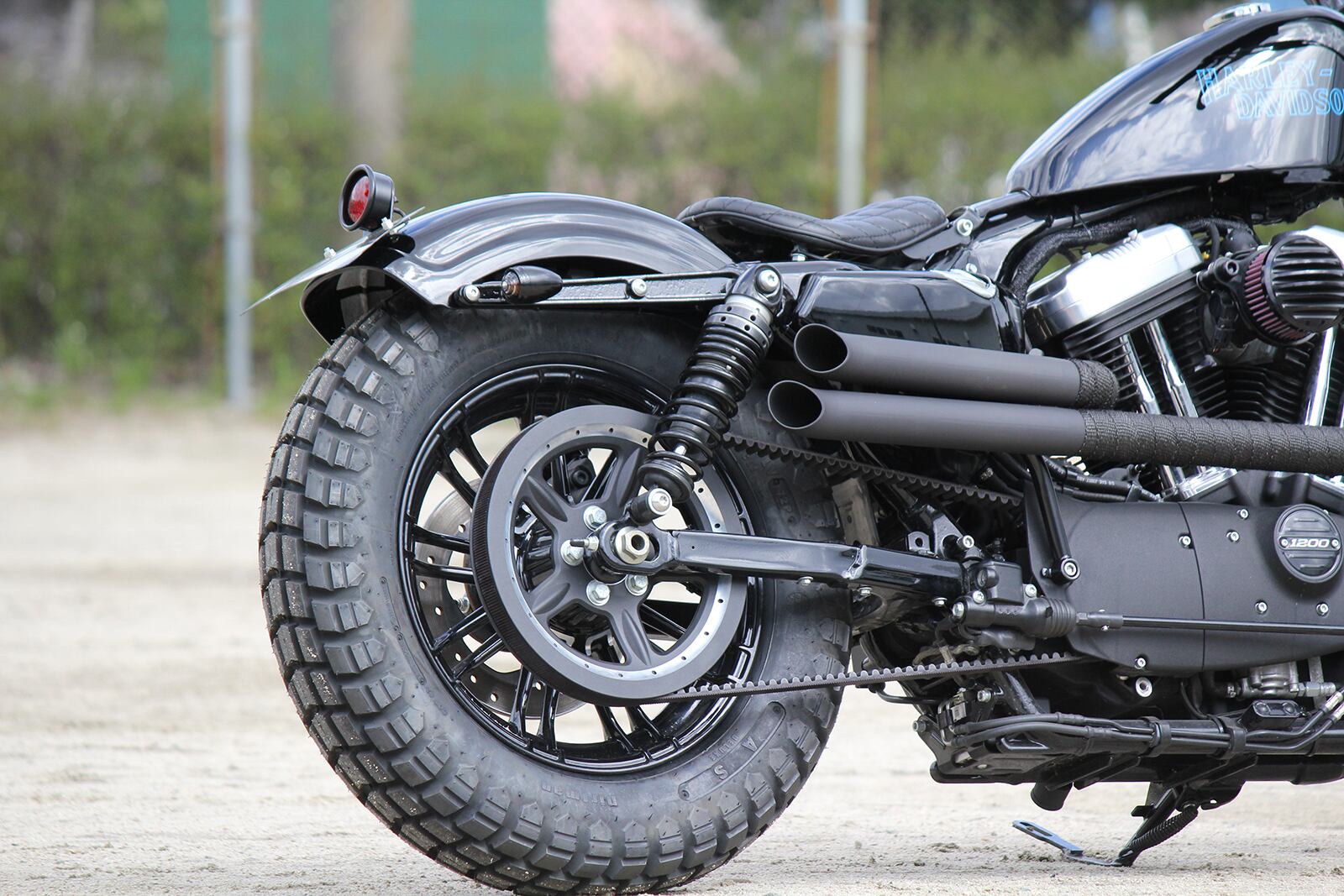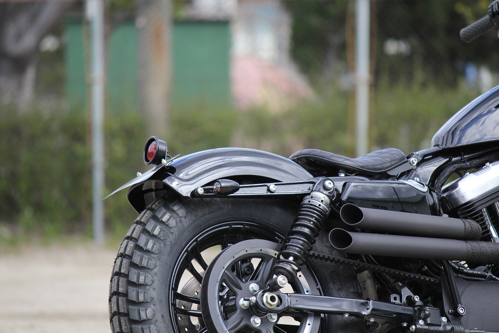 Short rear fender for Sportster (07'-09'). Hollow out the sides for a more stylish look. The end has a molding design that connects from the side, and an optional LED tail (61-89591) can be attached to the back. *Side license plate required