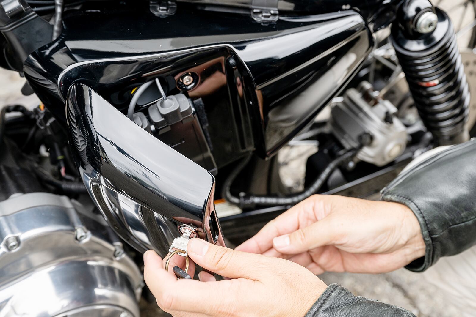 "Side cover that can hide ETC (separate type) that is noticeable around the handle. The door with a key after bolting ensures security. Flowing design reminiscent of an air duct. *Due to changes in the thickness of the keyhole mounting part and the inside of the door, it may become difficult to hook the key when locking the door.