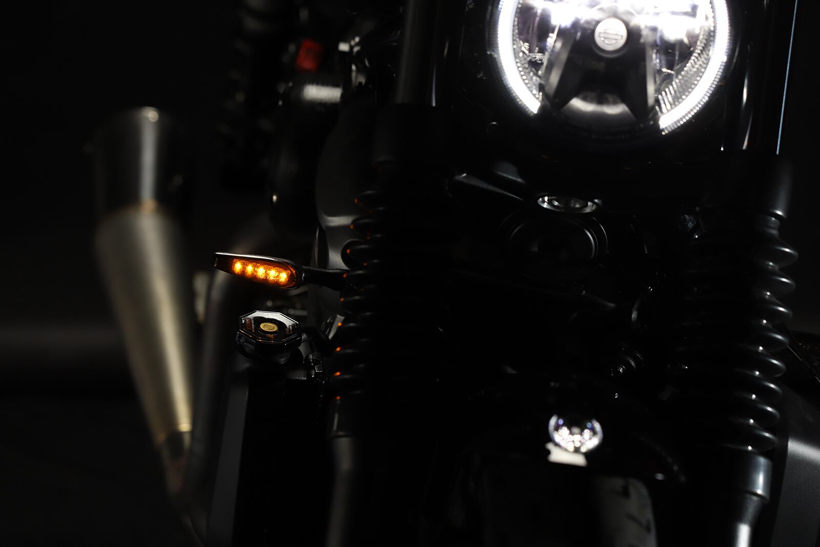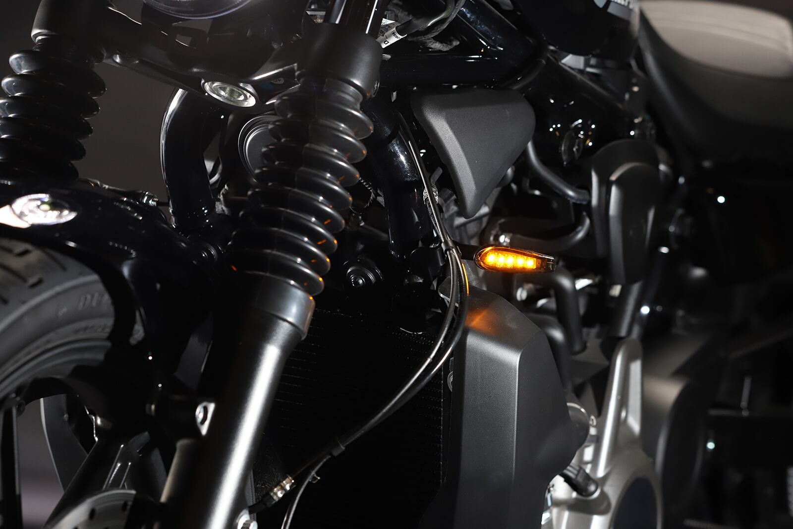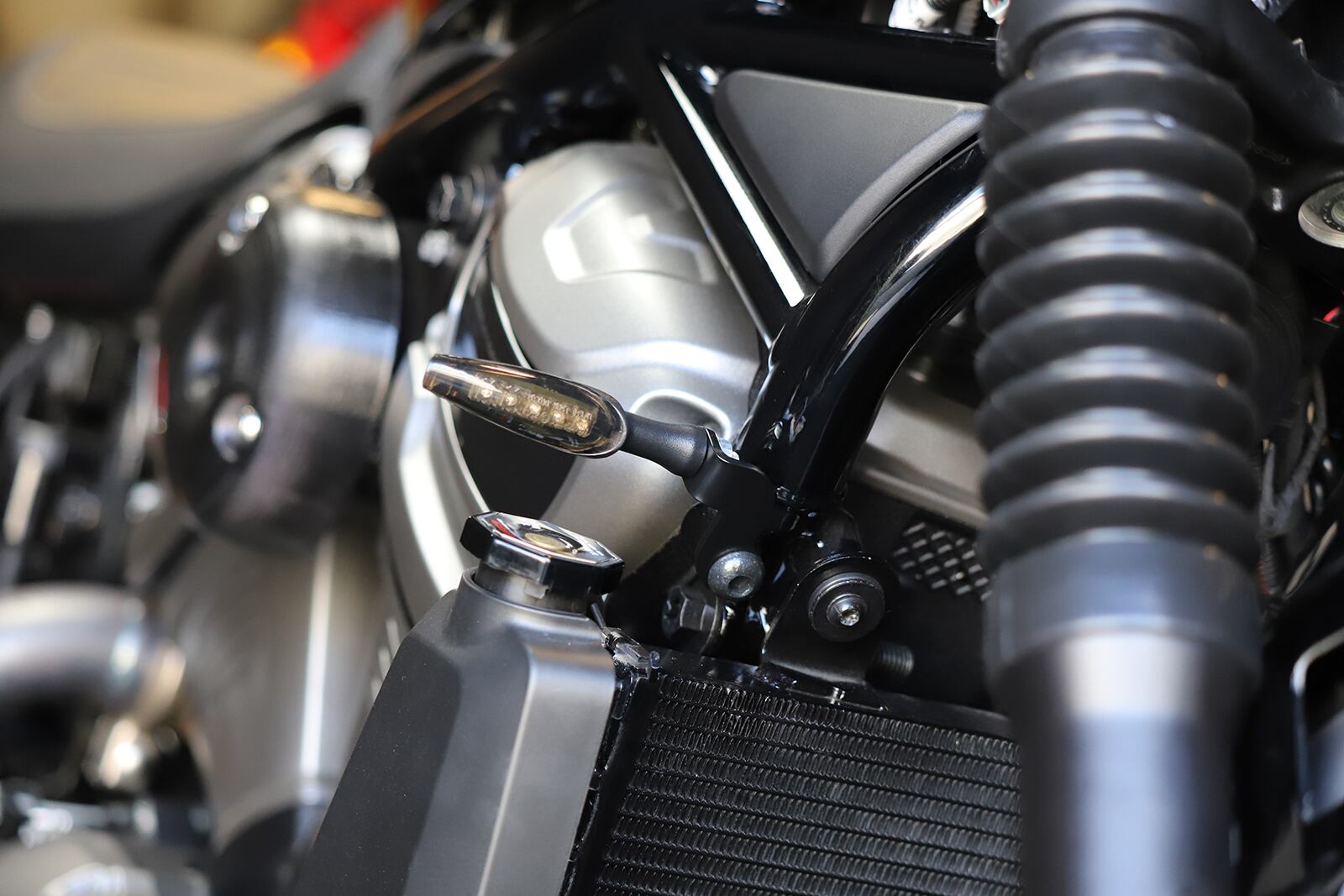 The turn signal stay allows you to change the mounting position from the original protruding position next to the fork to the narrow downtube side that is not too far from the vehicle body. Compatible with M8 size blinkers. Depending on the turn signal installed, phenomena such as high flash may occur. In that case, take measures such as adding a resistor.