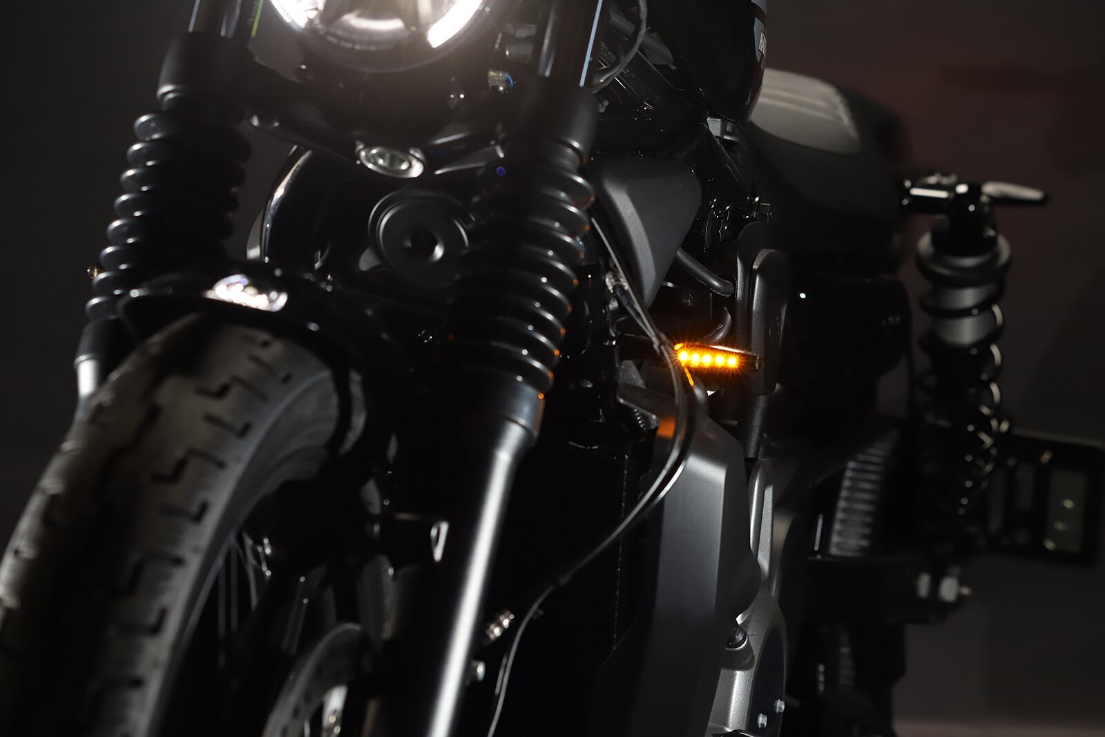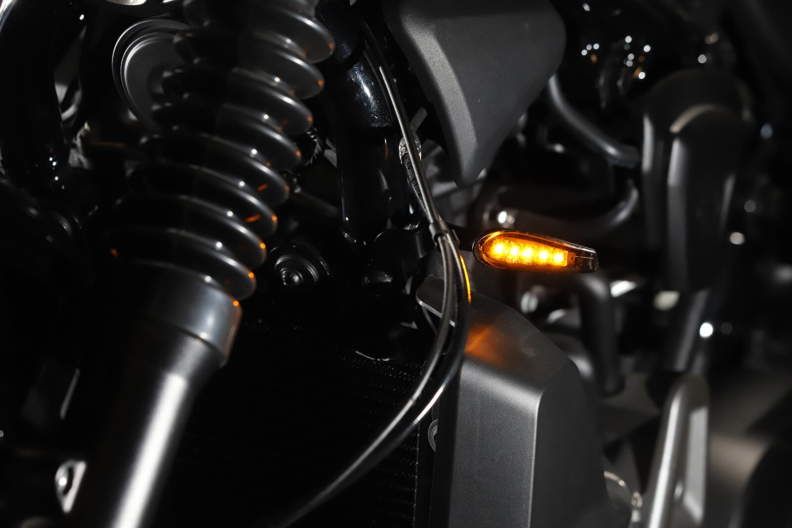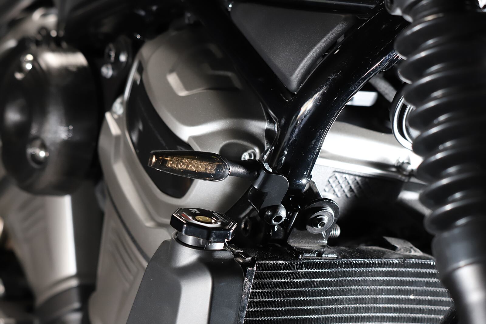 The turn signal stay allows you to change the mounting position from the original protruding position next to the fork to the narrow downtube side that is not too far from the vehicle body. Compatible with M8 size blinkers. Depending on the turn signal installed, phenomena such as high flash may occur. In that case, take measures such as adding a resistor.