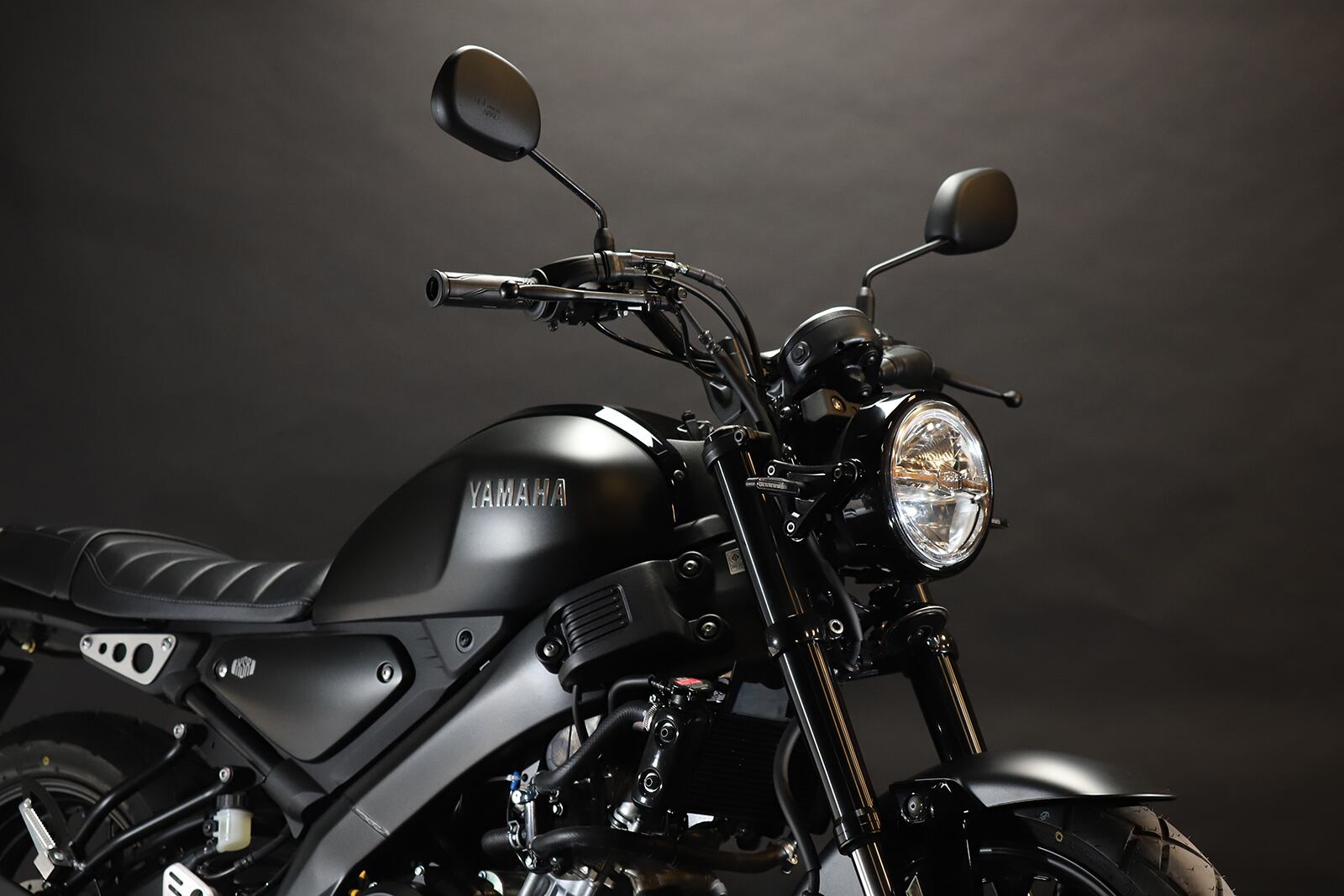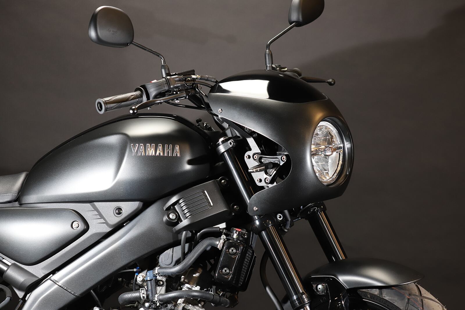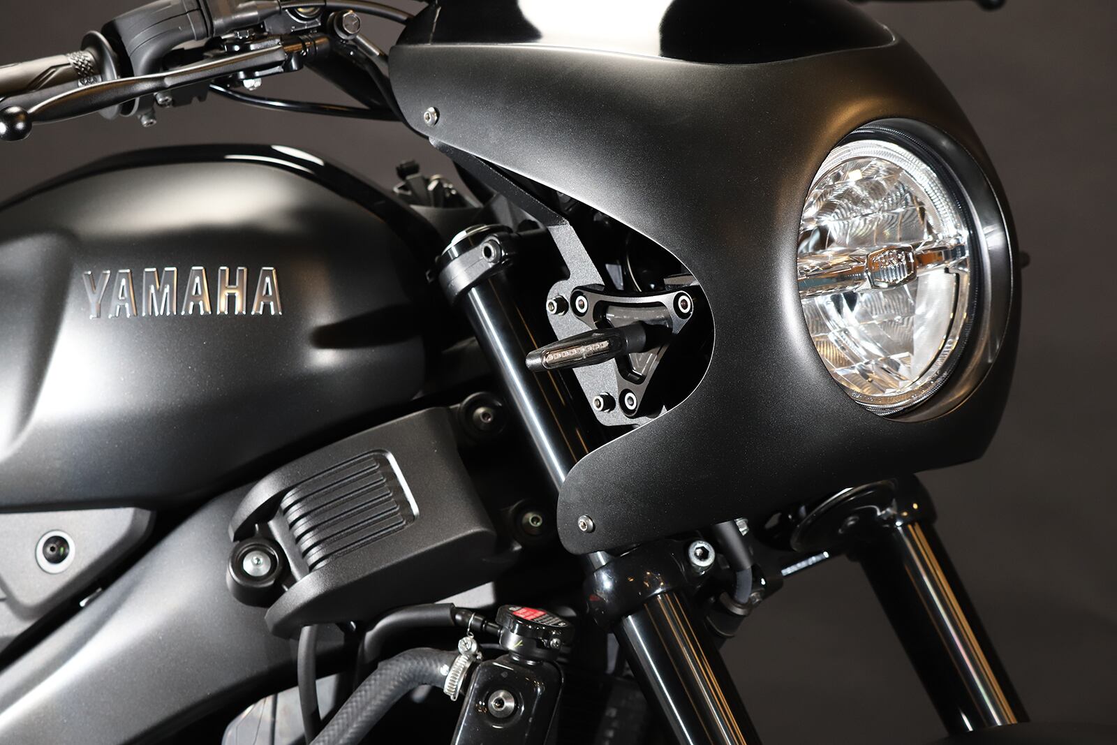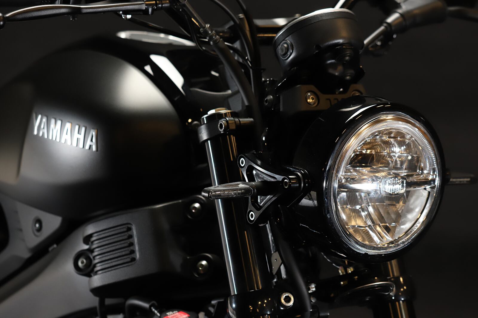 Lightweight billet aluminum headlight/turn signal stay. The stay is black, making it look tighter around the light. Can also be used with the genuine optional Cafe Racer Style Bikini Cowl KIT. Has mounting holes for M10 turn signals. Genuine blinkers cannot be used.