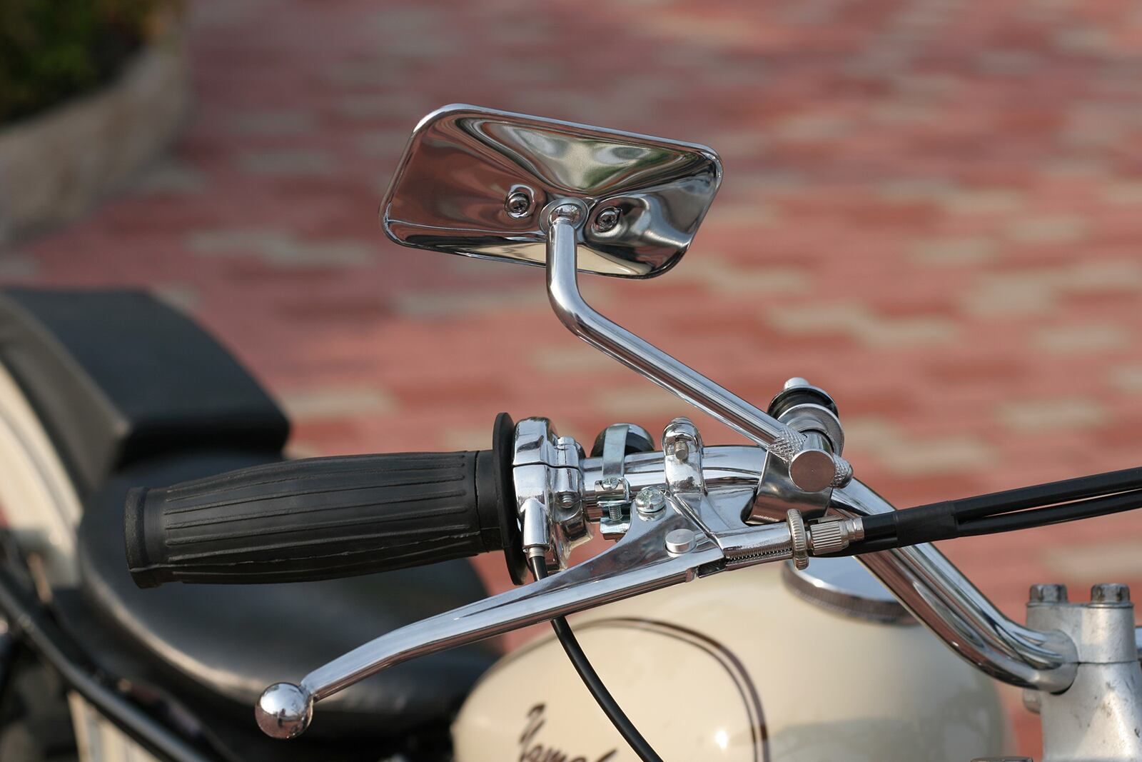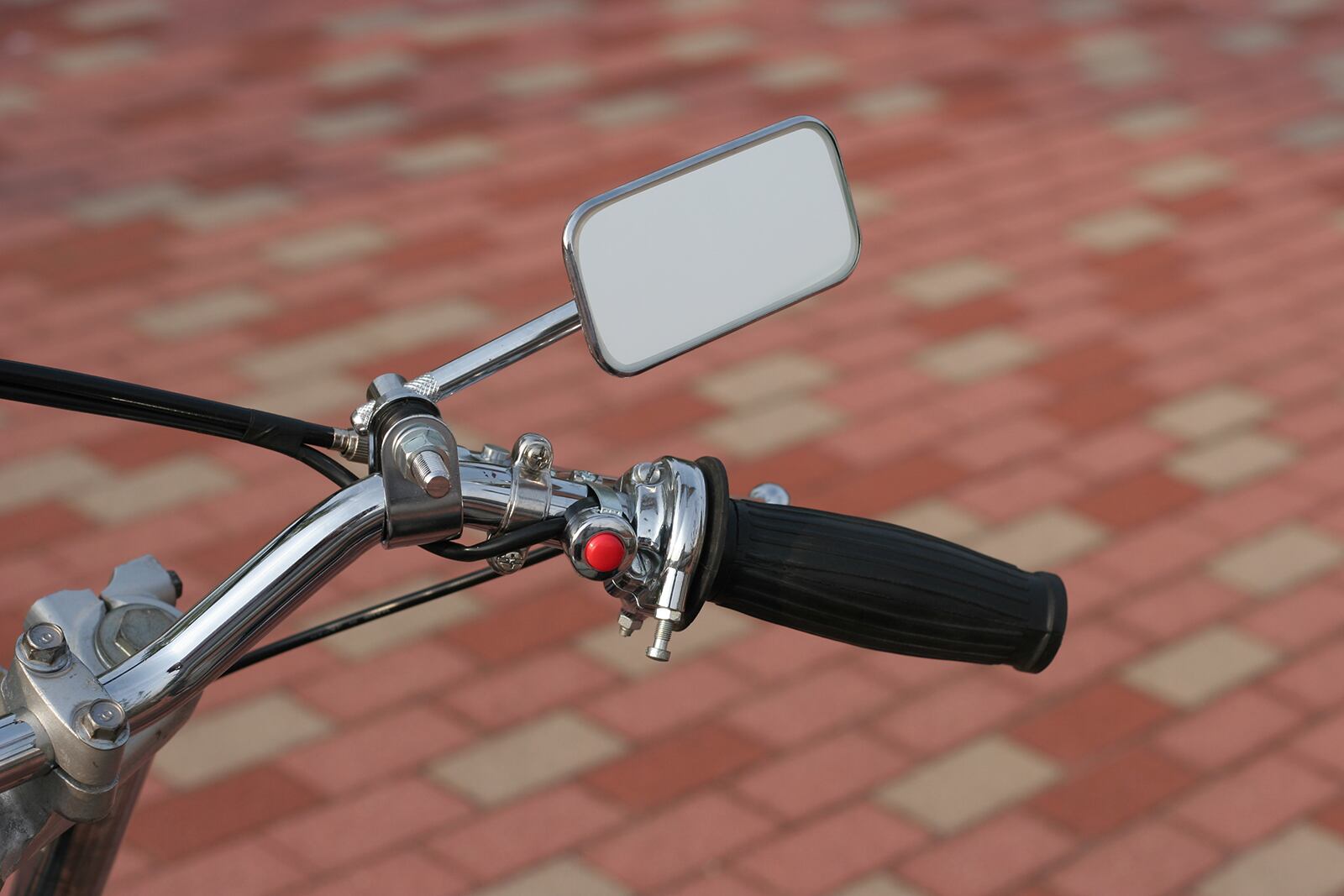 Square type clamp type mirror. Can be used on both left and right sides. Used for 1 inch (25.4 mm) and 7/8 inch (φ22.2 mm) handles.
