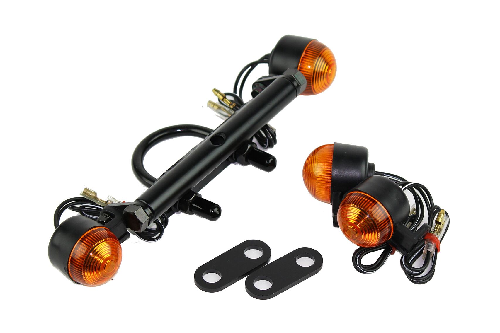 A turn signal kit for SR that includes the popular mini turn signal and an original turn signal stay that can be mounted on the undertube of the frame. Even narrower installation is possible than a general understem mount! This is a turn signal kit with outstanding style that perfectly matches any style of SR. Available in two types: long type and short type. *The long type has a wide body and has excellent visibility. The short type has a narrow body width and is recommended for those who aim for an extremely narrow style! *The rear turn signal can be mounted in the same location as the original, or it can be mounted above or below the suspension using the included stay. You can choose the mounting position according to your preference.