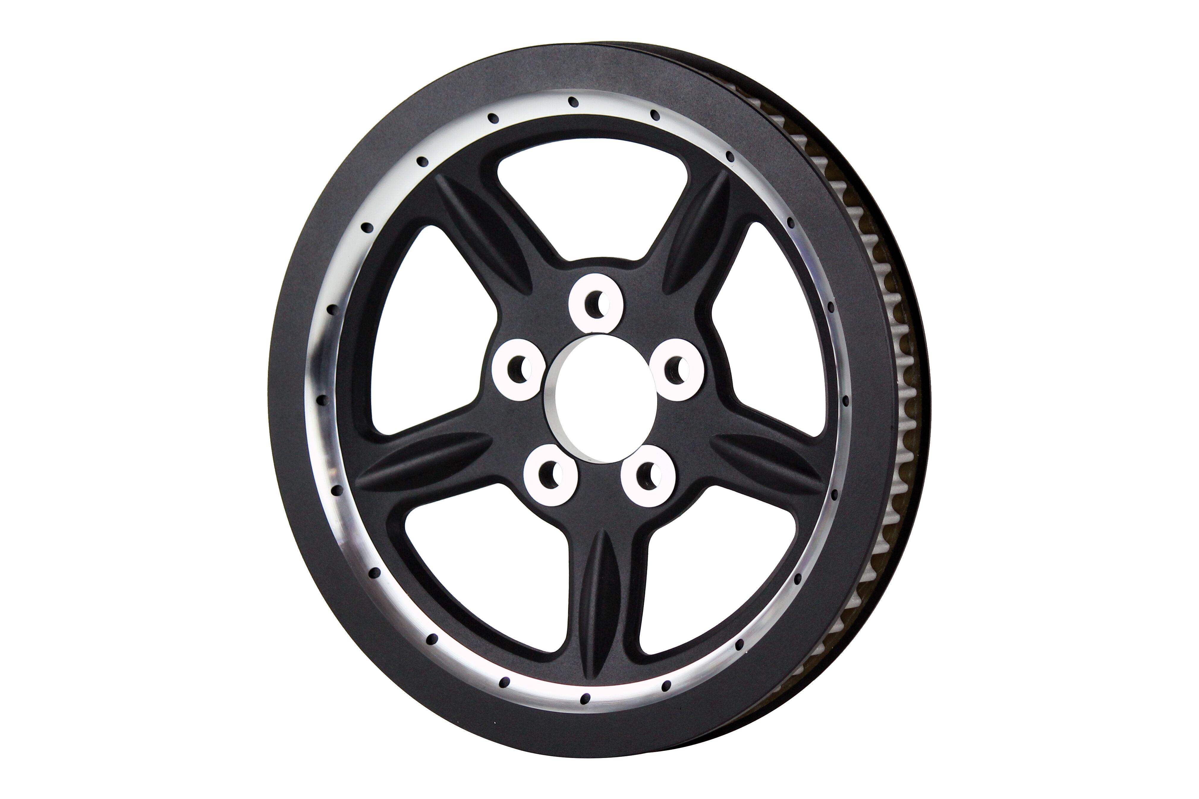 Black North American type pulley. It has a clean and neat look, is approximately 2kg lighter, and eliminates the hub damper for a more direct ride. *Please use genuine bolts.