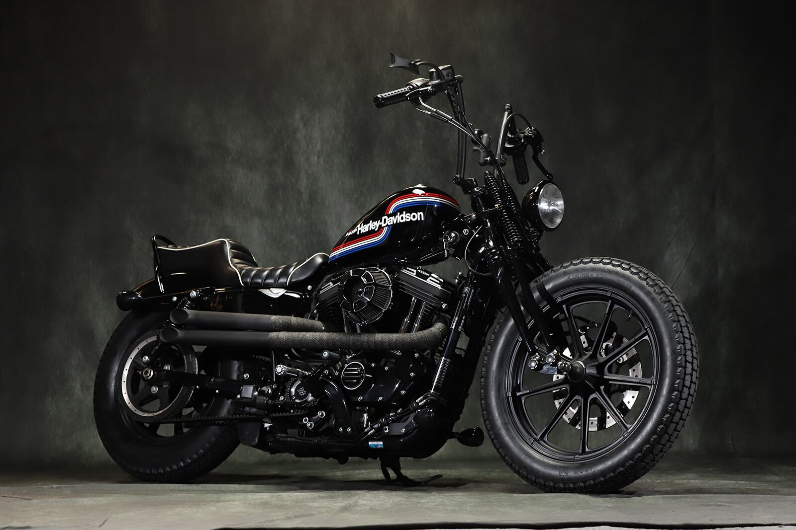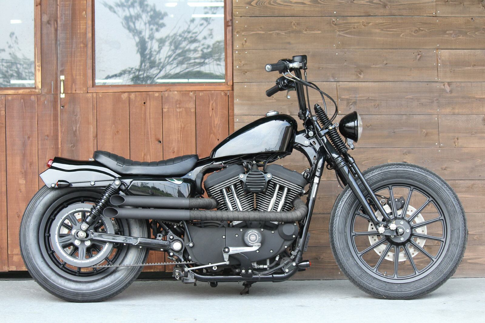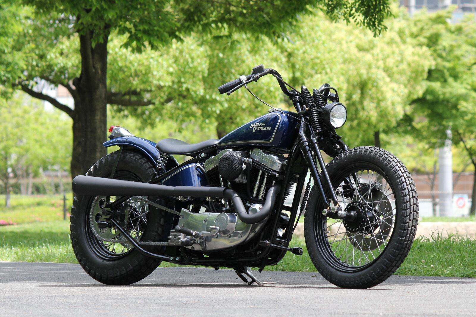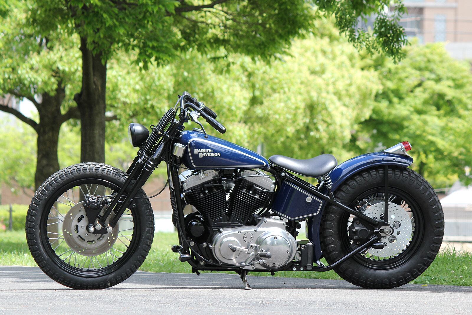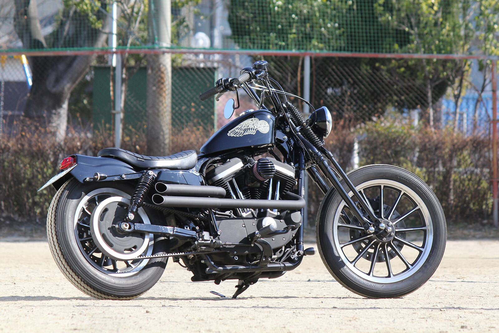 Springer forks are much weaker than telescopic forks, which are currently used on almost all factory models. If a strong braking force is applied, a large burden will be placed on the rear arm, so the special kit uses a caliper that is weaker than ordinary ones. On that basis, unlike a regular Sportster, please drive with 30% braking in the front and 70% in the rear.